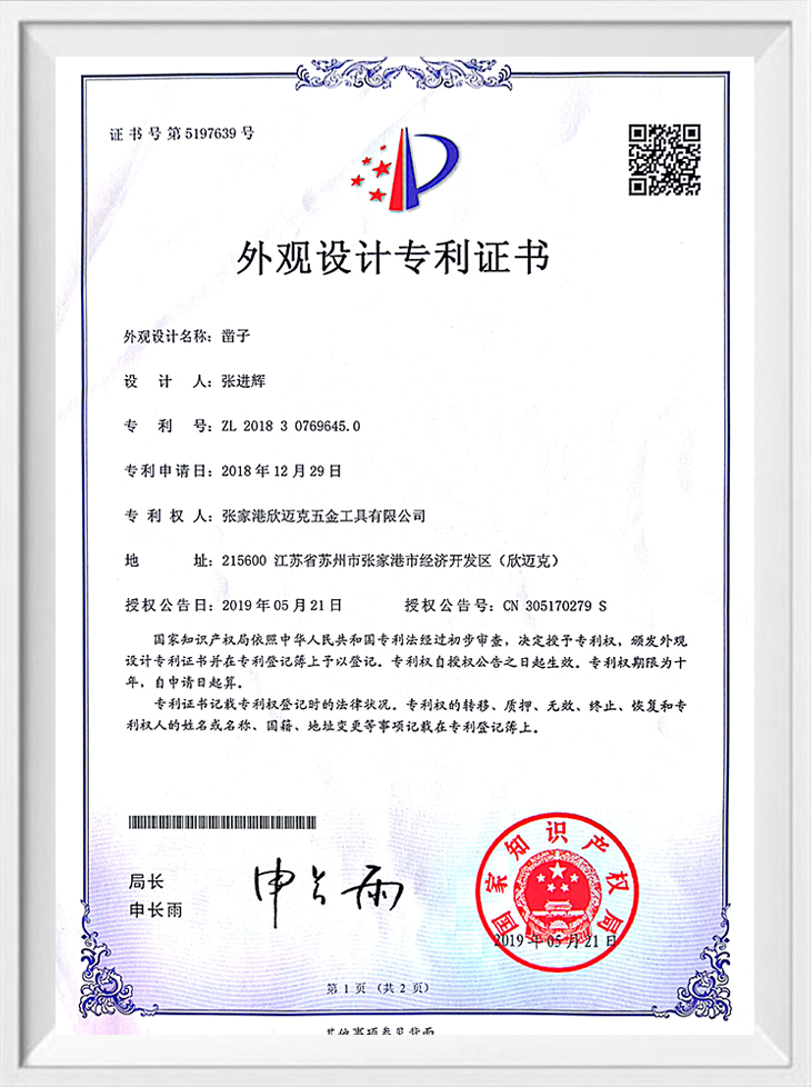 Certificato di brevetto di aspetto