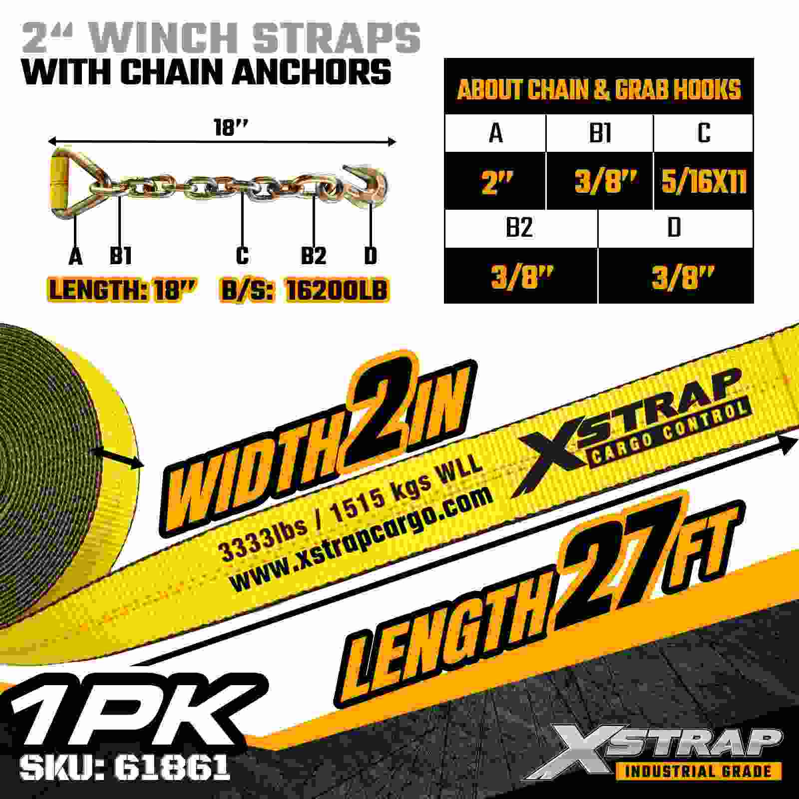 Cinghia per verricello standard da 2" × 27 piedi con ancore a catena