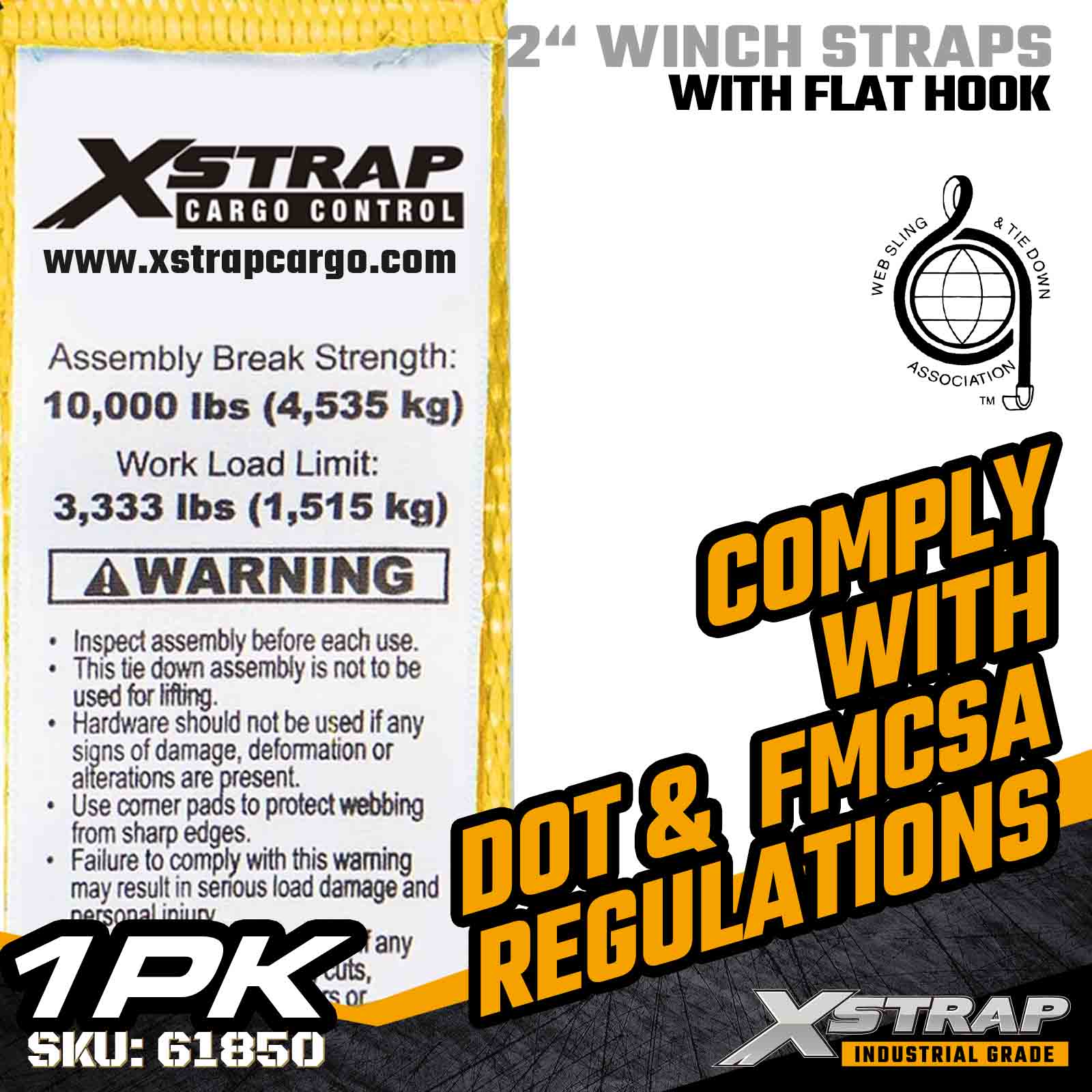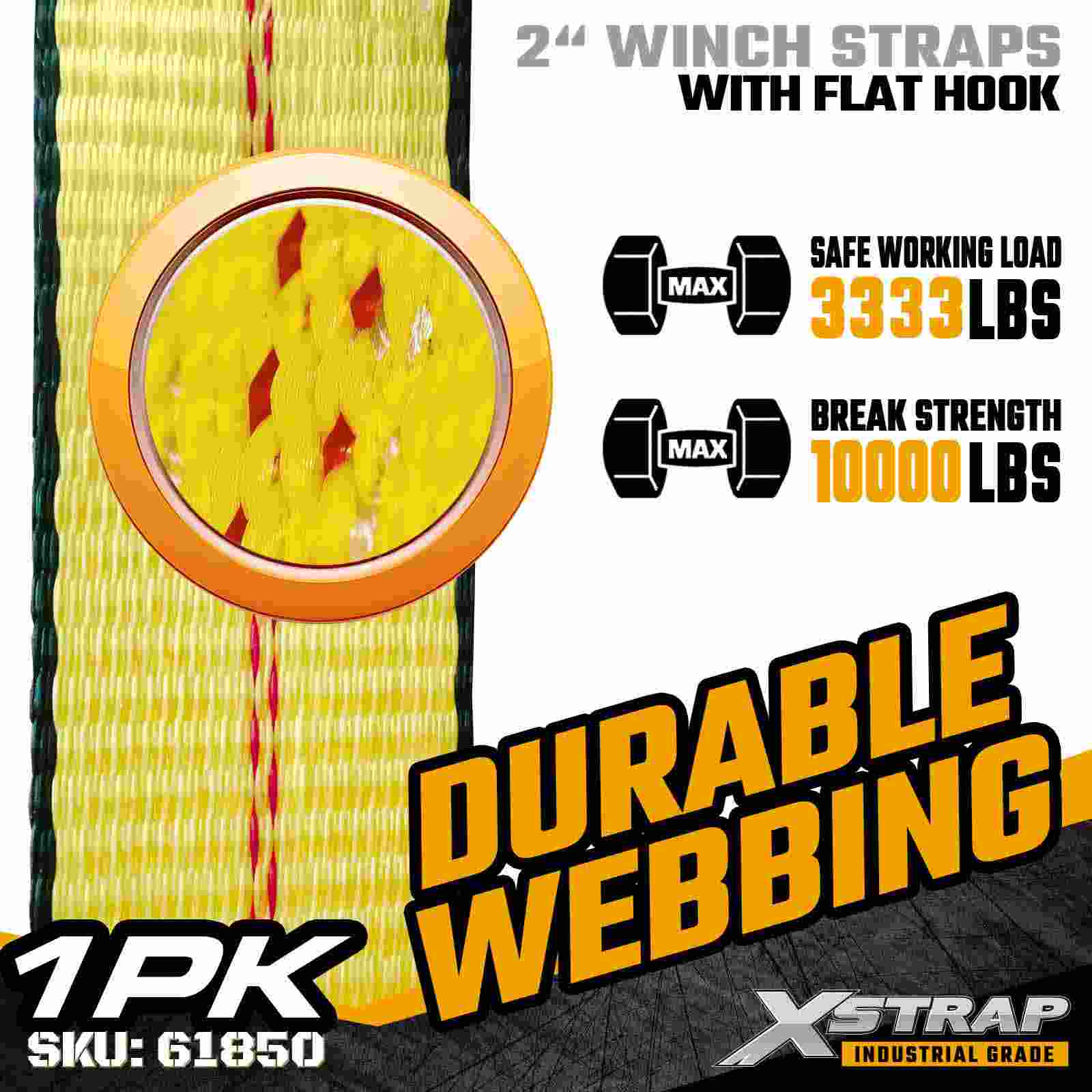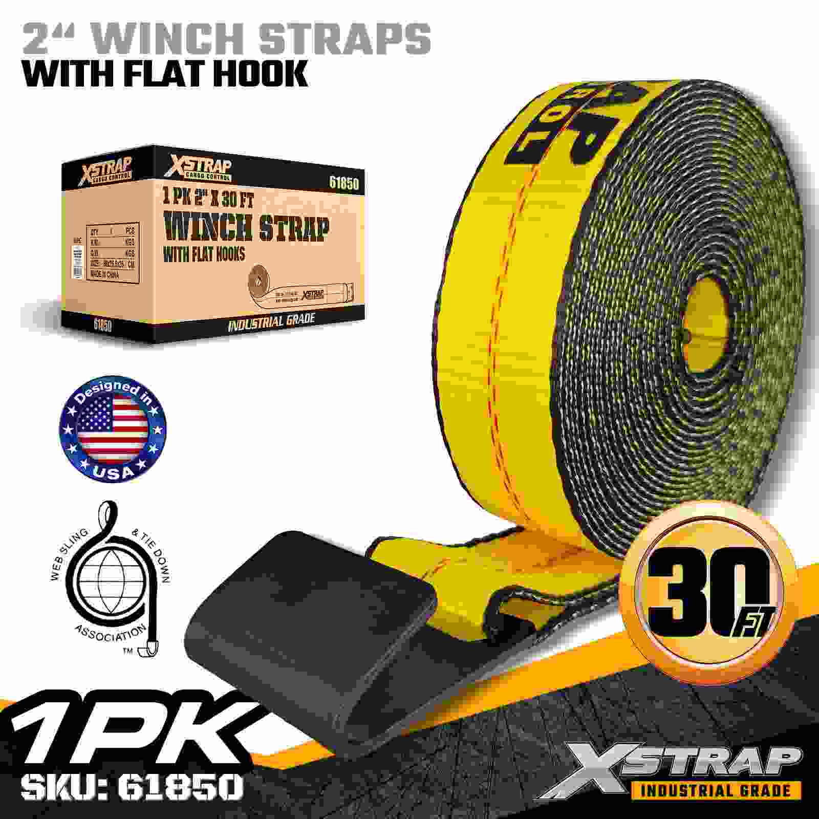 La cinghia per verricello standard Xstrap 61850 da 2" × 30 piedi è costruita per un fissaggio affidabile del carico a pianale, dotata di un gancio piatto rinforzato e di una cinghia in poliestere ad alta resistenza. Con un limite di carico di lavoro di 3.333 libbre e una resistenza alla rottura di 10.000 libbre, fornisce prestazioni affidabili per il trasporto quotidiano di merci, carichi di pallet, legname, tubi e applicazioni logistiche generali.