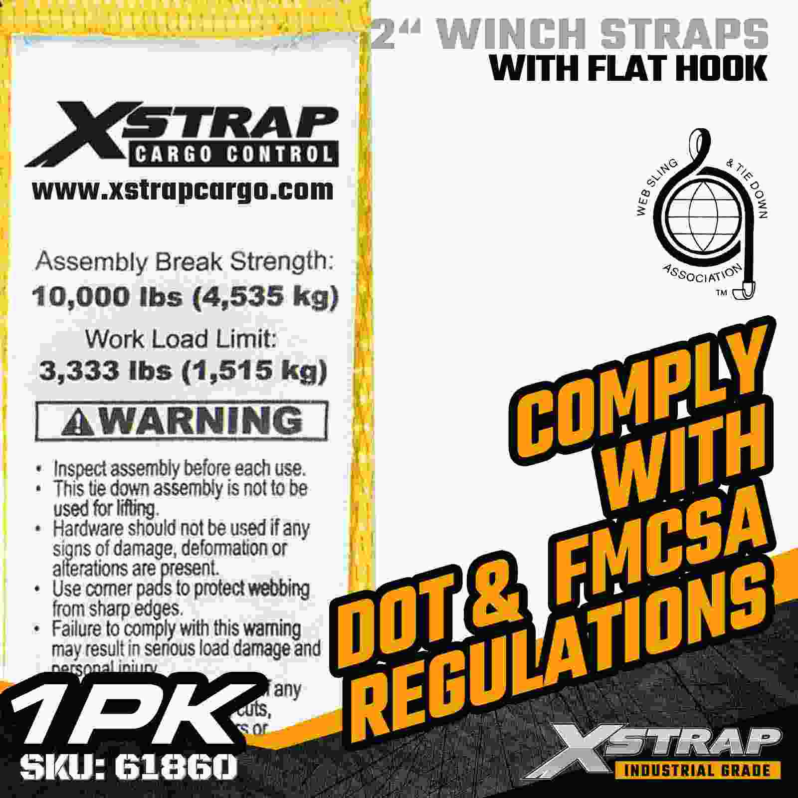 La cinghia per verricello standard Xstrap 61860 da 2" × 27 piedi è costruita per un fissaggio affidabile del carico a pianale, dotata di un gancio piatto rinforzato e di una cinghia in poliestere ad alta resistenza. Con un limite di carico di lavoro di 3.333 libbre e una resistenza alla rottura di 10.000 libbre, offre prestazioni affidabili per il trasporto quotidiano di merci, carichi di pallet, legname e applicazioni logistiche generali