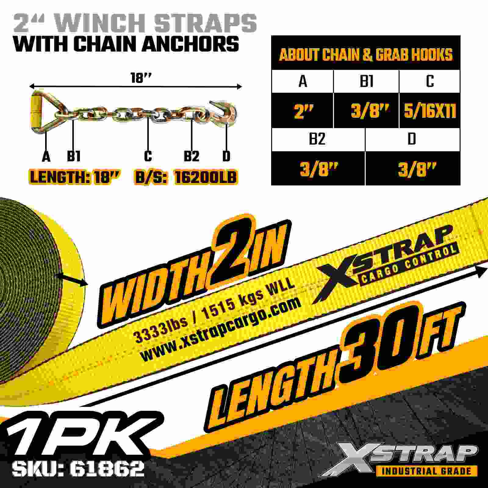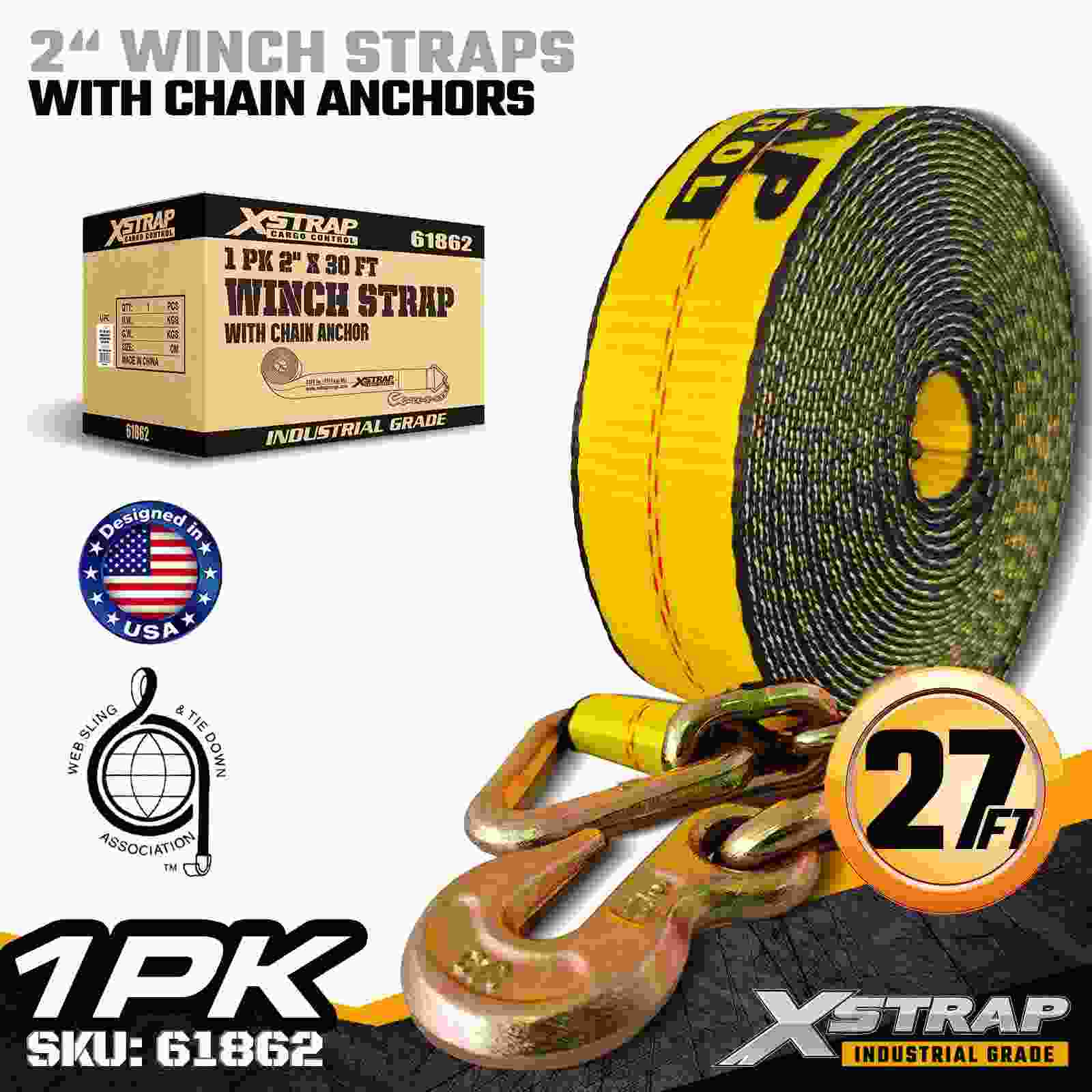 La cinghia per verricello standard Xstrap 61862 da 2" × 30 piedi è costruita per un fissaggio affidabile del carico a pianale, dotata di ancoraggi a catena durevoli e cinghie in poliestere ad alta resistenza. Con un limite di carico di lavoro di 3.333 libbre e una resistenza alla rottura di 10.000 libbre, fornisce prestazioni affidabili per il trasporto quotidiano di merci, carichi di pallet, legname, tubi e applicazioni logistiche generali.