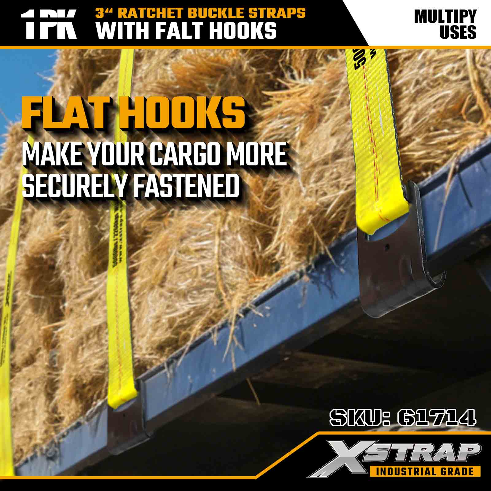 Xstrap 61714 Cinghie con fibbia a cricchetto da 3" x 30 piedi (confezione da 1) - Ganci piatti, capacità di carico di 5.000 libbre, resistenza alla rottura di 15.000 libbre, ancoraggio per carichi pesanti per camion, rimorchi e trasporto di merci industriali.