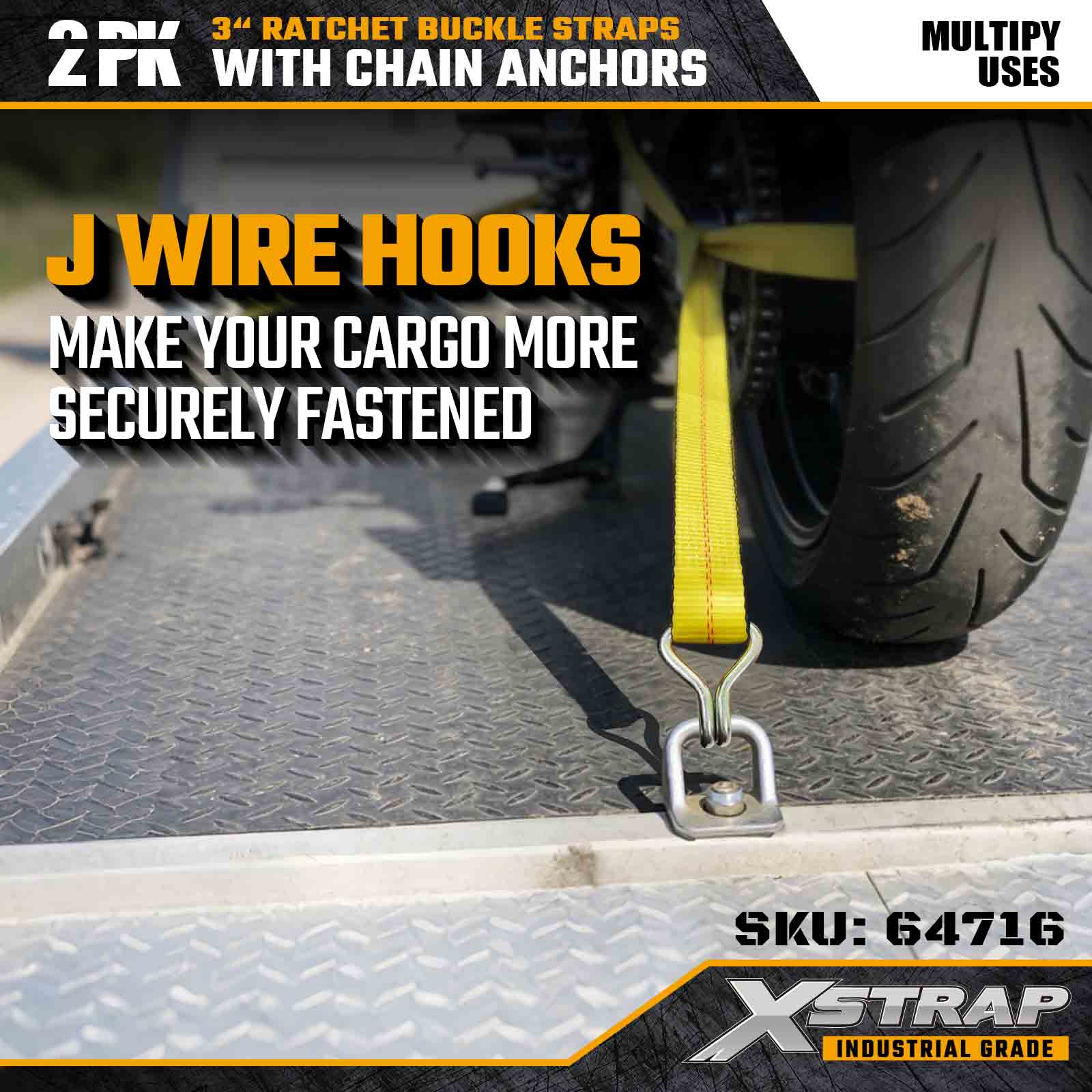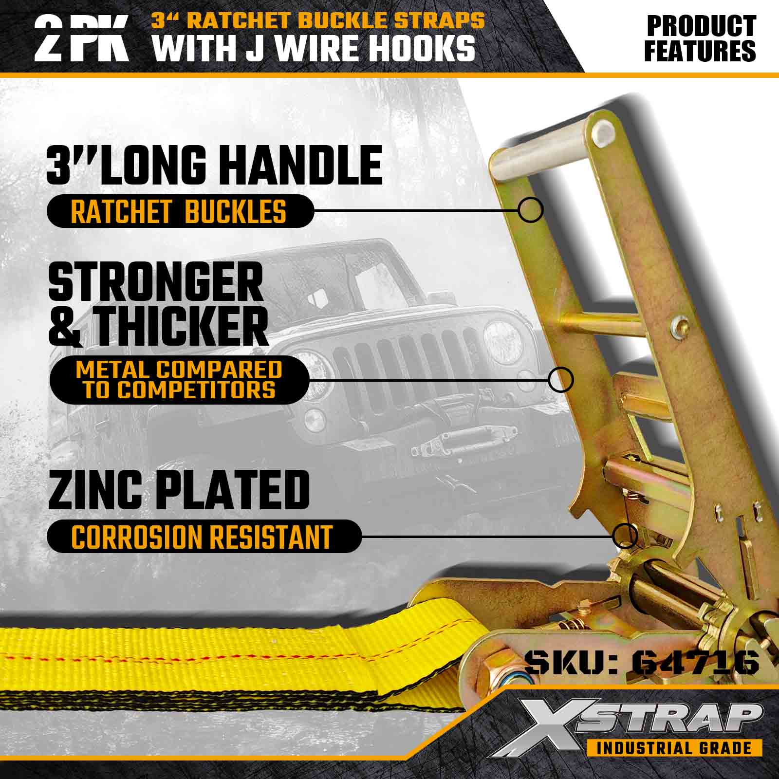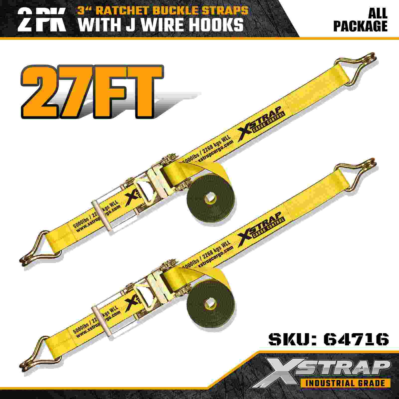 Le cinghie con fibbia a cricchetto Xstrap 64716 da 3" × 27 piedi (confezione da 2) sono progettate per il fissaggio professionale del carico, dotate di ganci in filo metallico ad alta resistenza e un meccanismo a cricchetto durevole. Con un limite di carico di lavoro di 5.000 libbre e una resistenza alla rottura di 15.000 libbre, queste cinghie offrono prestazioni affidabili per pianali, trasporto di attrezzature e attività di trasporto industriale.