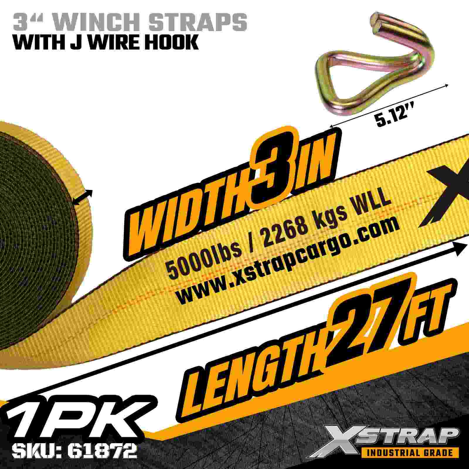 Cinghia per verricello standard da 3" × 27 piedi con gancio in filo metallico