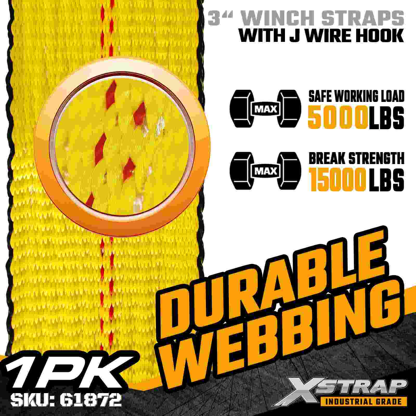 La cinghia per verricello standard Xstrap 61872 3" × 27 piedi è una soluzione di fissaggio del carico per carichi pesanti progettata per rimorchi a pianale e trasporto industriale. Dotata di un gancio in filo rinforzato e di una cinghia in poliestere extra larga da 3 pollici, questa cinghia per verricello da 3 pollici offre un limite di carico di lavoro di 5.000 libbre e una resistenza alla rottura di 15.000 libbre. Il design del gancio in filo offre opzioni di attacco flessibili, rendendolo ideale per gli operatori che necessitano di punti di connessione rapidi e versatili durante le attività quotidiane operazioni di trasporto.