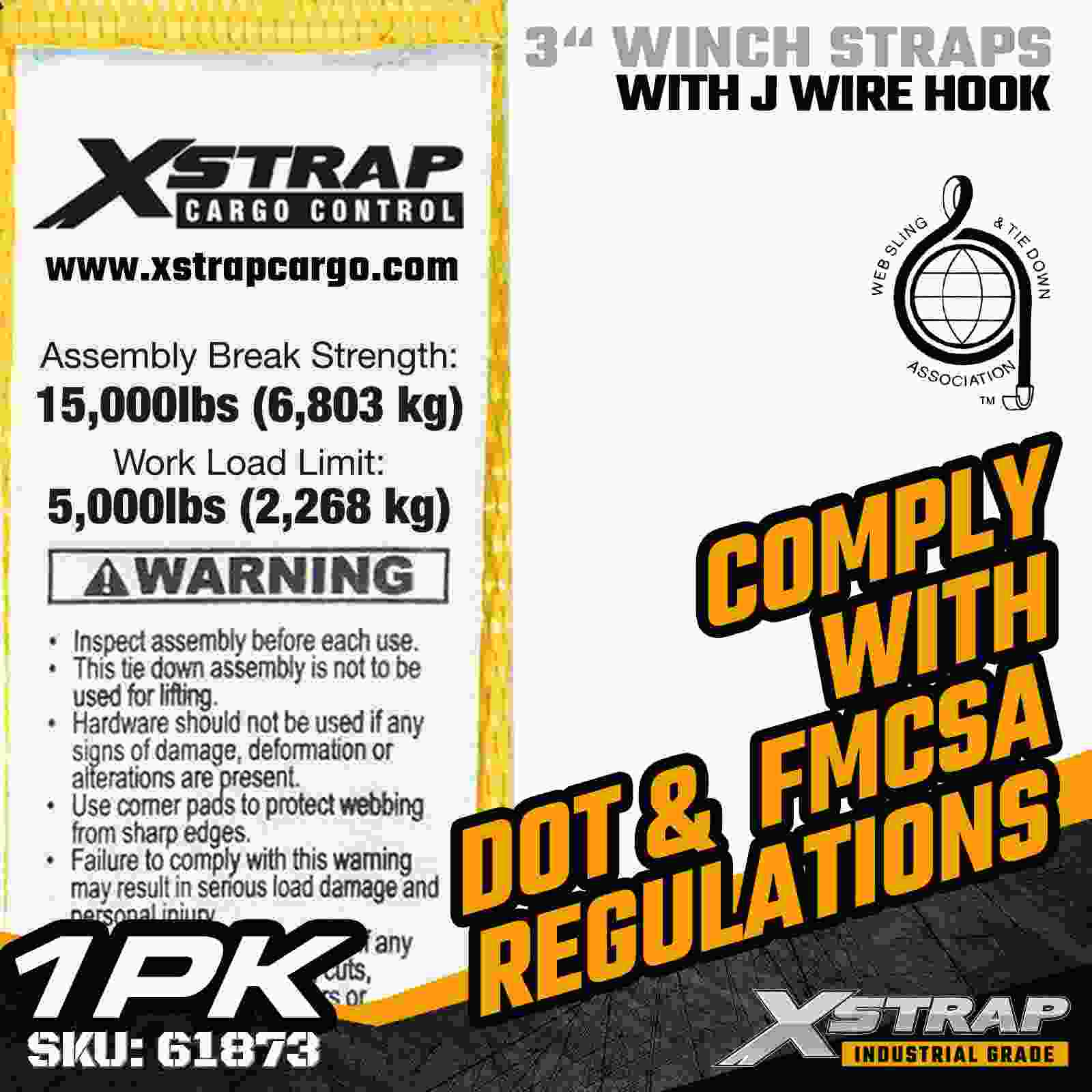 La cinghia per verricello standard Xstrap 61873 3" × 30 piedi è una cinghia di fissaggio per carichi pesanti progettata per rimorchi a pianale e merci di grandi dimensioni. Dotata di un gancio in filo metallico rinforzato e di una cinghia in poliestere extra larga da 3 pollici, questa cinghia per verricello da 3 pollici offre un limite di carico di lavoro di 5.000 libbre e una resistenza alla rottura di 15.000 libbre. La lunghezza estesa di 30 piedi fornisce una portata aggiuntiva, rendendola ideale per il fissaggio più largo, più alto o irregolare carichi sagomati che richiedono opzioni di fissaggio flessibili.