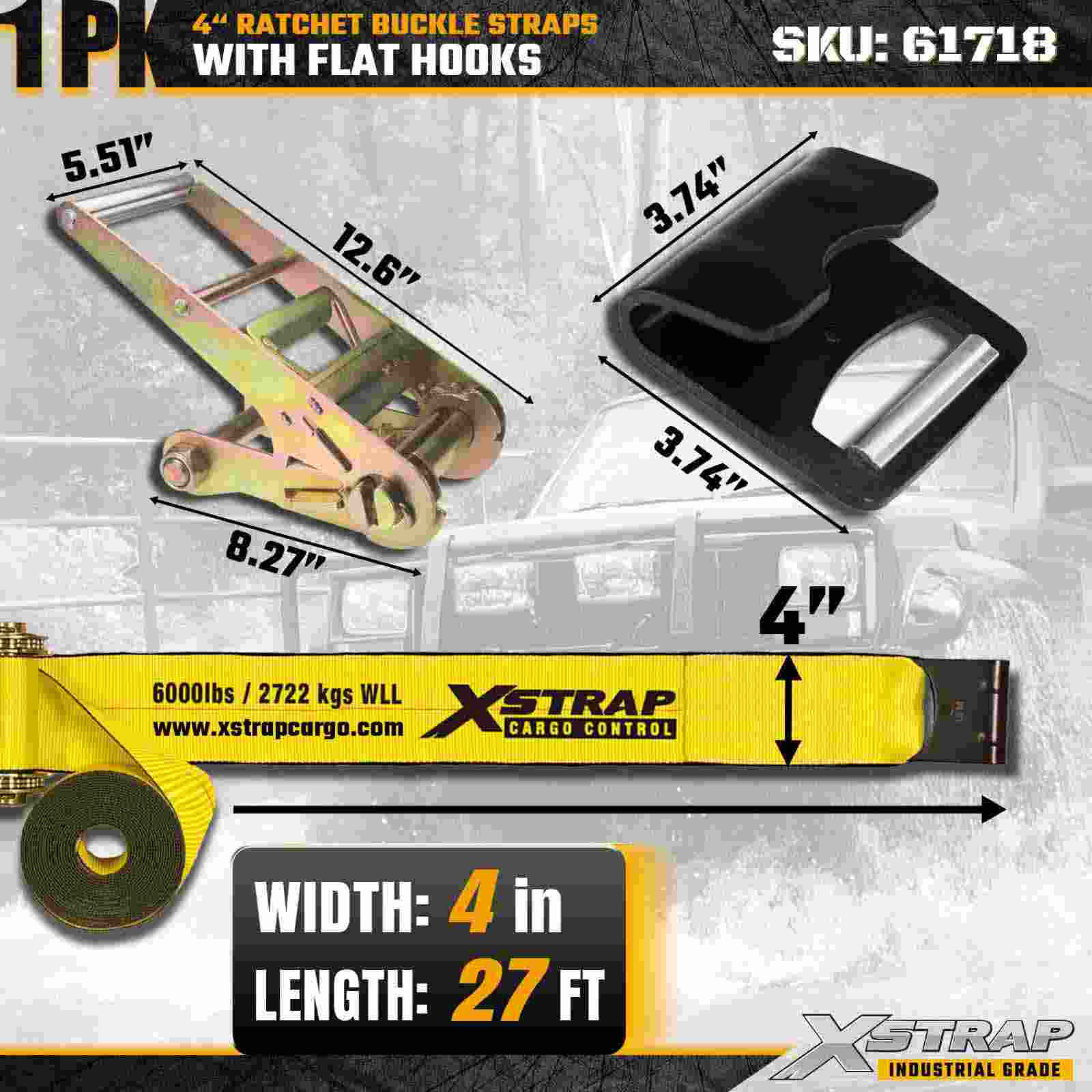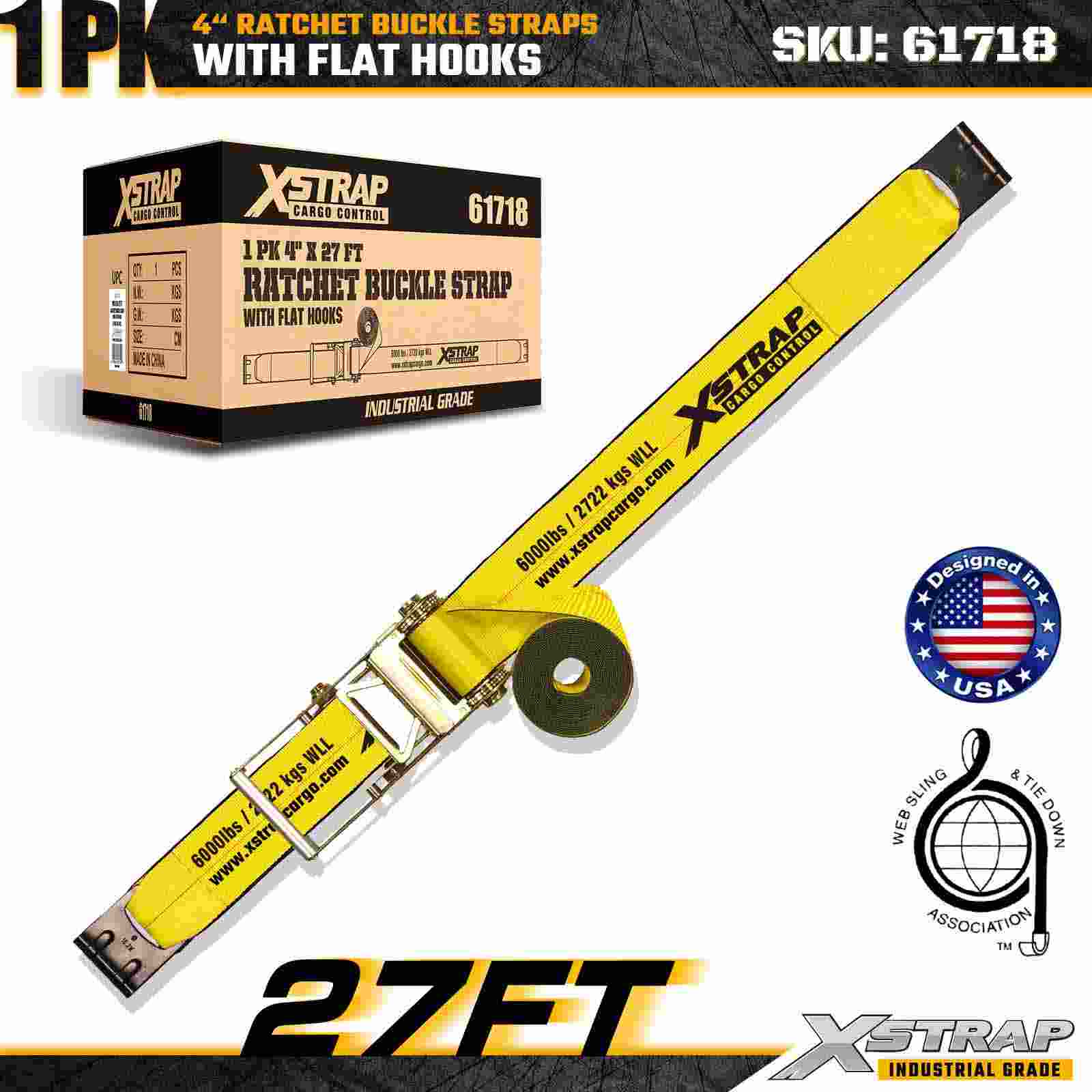 - Fettuccia da 27 piedi per applicazioni di carico versatili: la lunghezza della cinghia da 27 piedi offre un'ampia portata per fissare merci grandi, larghe o raggruppate come legname, tubi di acciaio, macchinari e merci pallettizzate.