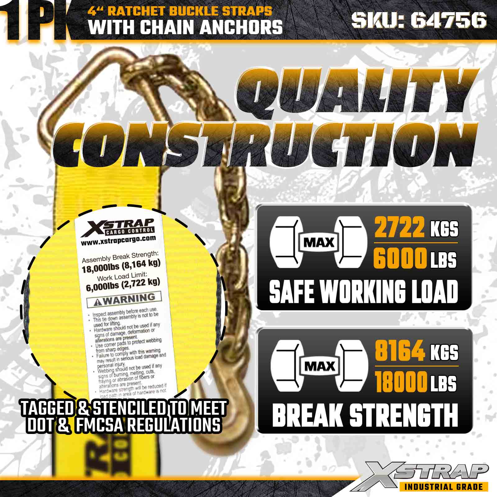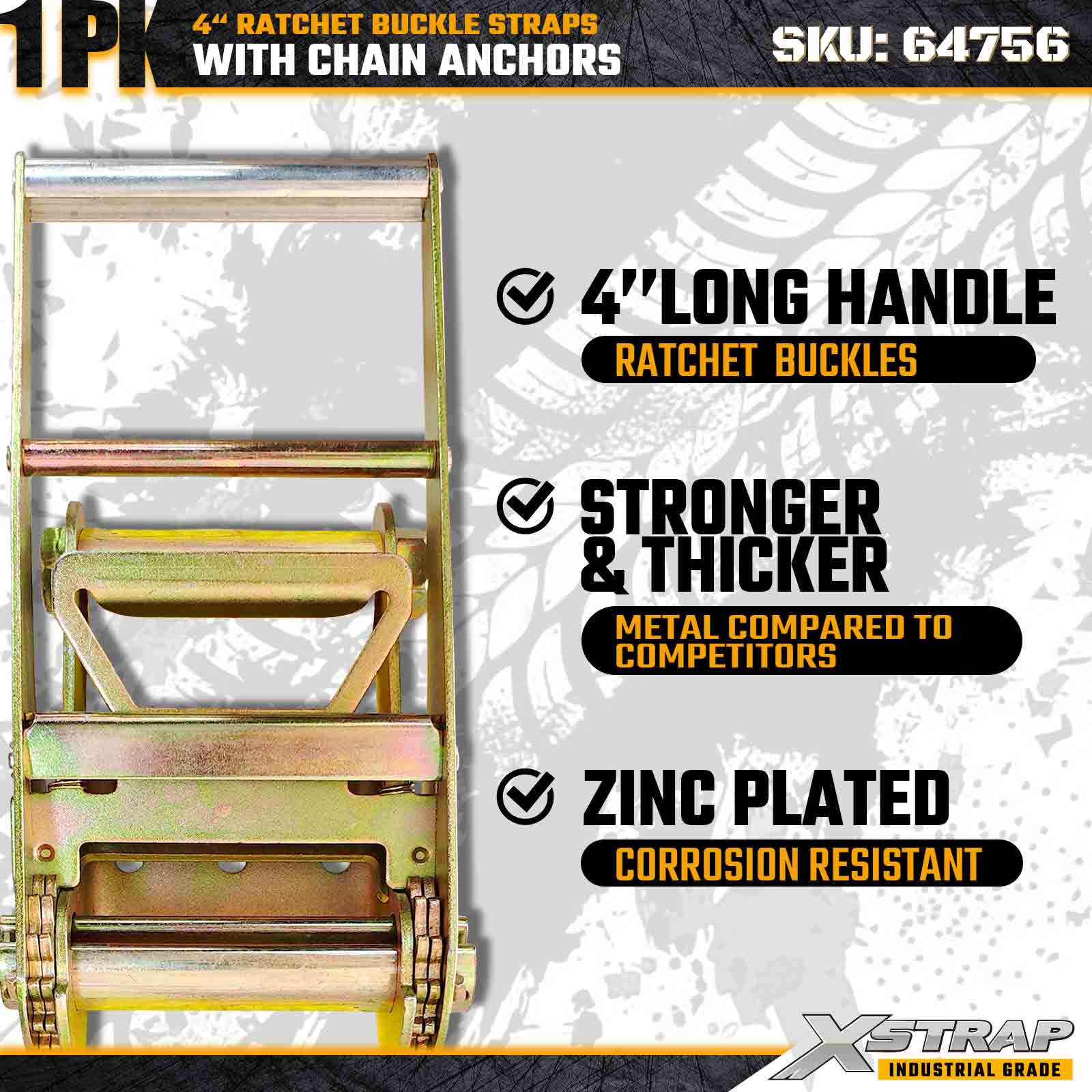 Xstrap 64756 Cinturino con fibbia a cricchetto da 4" x 50 piedi con ancoraggi a catena Resistenza alla rottura 18.000 libbre (confezione da 1)