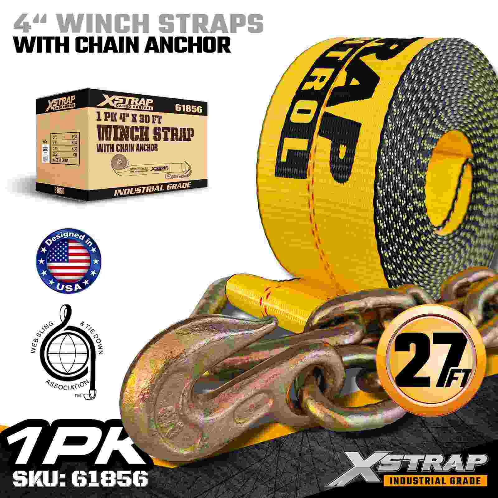 Cinghia per verricello standard da 4" × 30 piedi con ancora a catena
