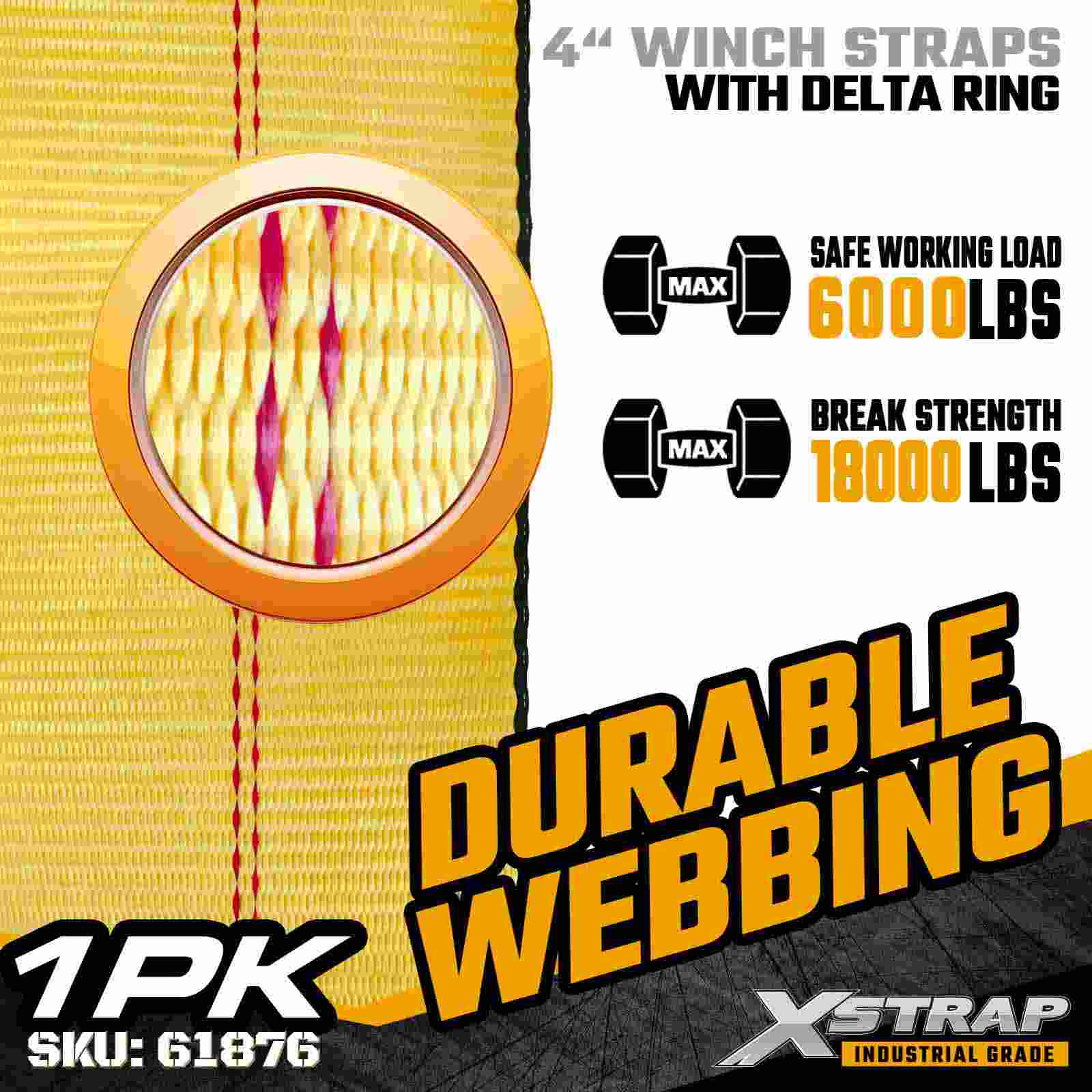 La cinghia per verricello standard Xstrap 61876 4" × 27 piedi è una cinghia di fissaggio per carichi pesanti di alta qualità progettata per rimorchi a pianale e trasporto industriale. Dotata di un Anello Delta rinforzato e di una cinghia in poliestere ultra larga da 4 pollici, questa cinghia per verricello da 4 pollici offre un limite di carico di lavoro di 6.000 libbre e una resistenza alla rottura di 18.000 libbre. Il design Delta Ring offre un aggancio del carico multidirezionale, rendendolo ideale per fissare carichi complessi o irregolari che richiedono maggiore stabilità e ancoraggio flessibile.