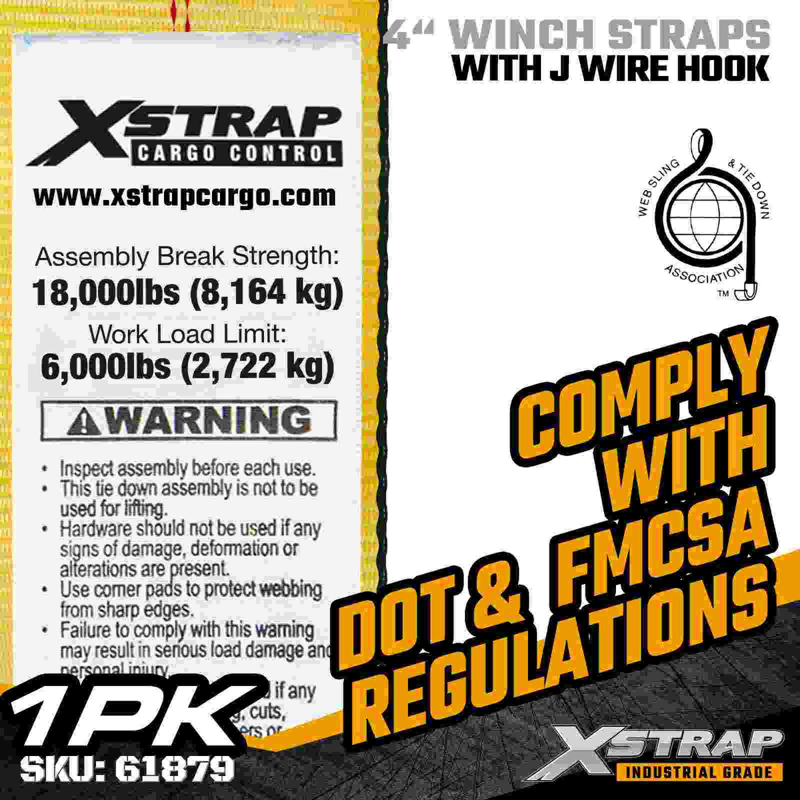 La cinghia per verricello standard Xstrap 61879 4" × 27 piedi è una cinghia di ancoraggio flessibile e resistente per il carico, progettata per rimorchi a pianale e trasporto industriale. Dotata di un gancio in filo rinforzato e di una cinghia in poliestere ultra larga da 4 pollici, questa cinghia per verricello da 4 pollici offre un limite di carico di lavoro di 6.000 libbre e una resistenza alla rottura di 18.000 libbre. Il design del gancio in filo offre opzioni di attacco versatili, rendendola ideale per gli operatori che necessitano di rapidità, punti di connessione adattabili per vari tipi di merci.
