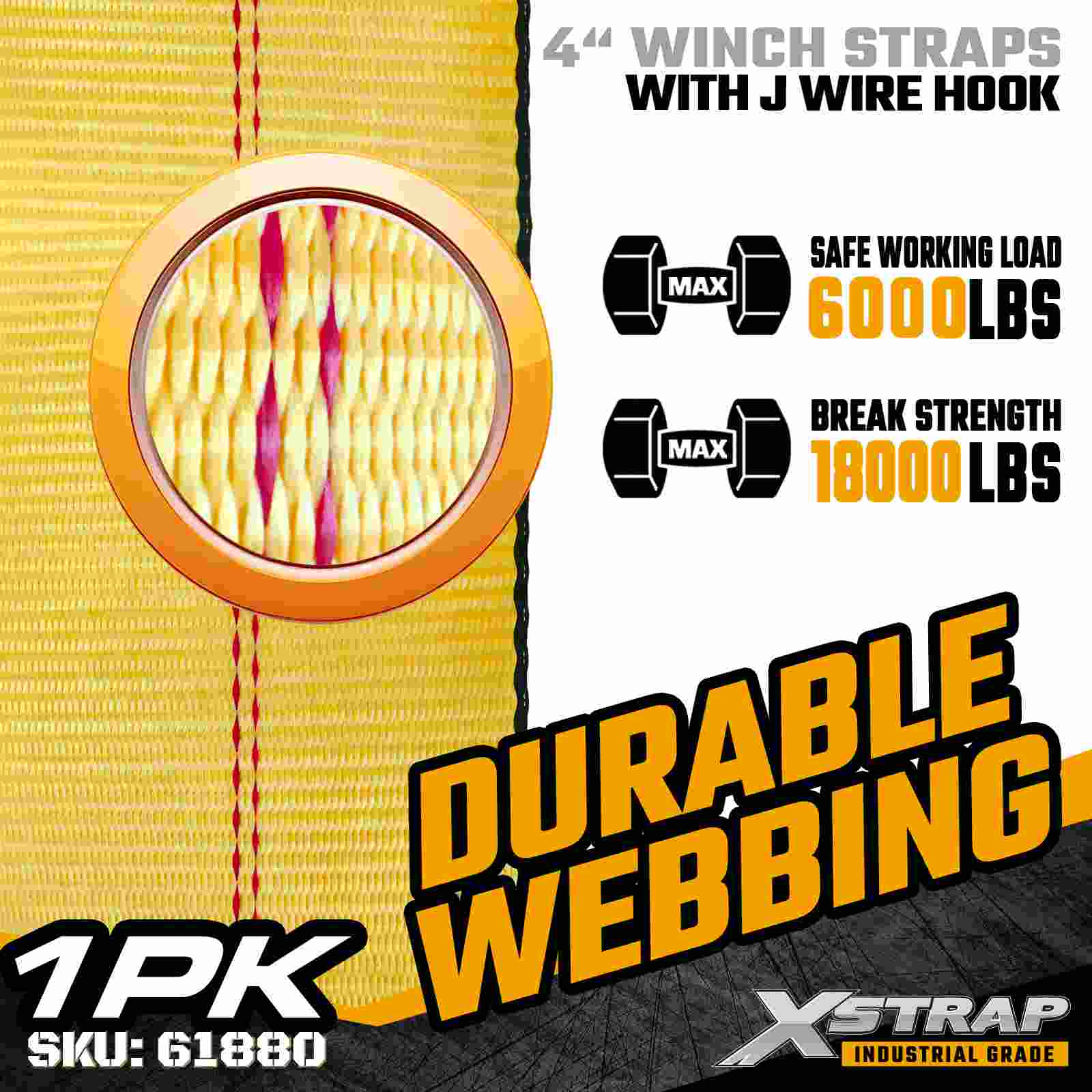 La cinghia per verricello standard Xstrap 61880 4" × 30 piedi è una cinghia di fissaggio del carico ad alta capacità e a portata estesa progettata per rimorchi a pianale e merci industriali di grandi dimensioni. Dotata di un gancio in filo metallico rinforzato e di una cinghia in poliestere ultra larga da 4 pollici, questa cinghia per verricello da 4 pollici offre un limite di carico di lavoro di 6.000 libbre e una resistenza alla rottura di 18.000 libbre. La lunghezza estesa di 30 piedi fornisce ulteriore portata e flessibilità, rendendola ideale per fissaggio di carichi larghi, alti o di forma irregolare che richiedono opzioni di ancoraggio adattabili.