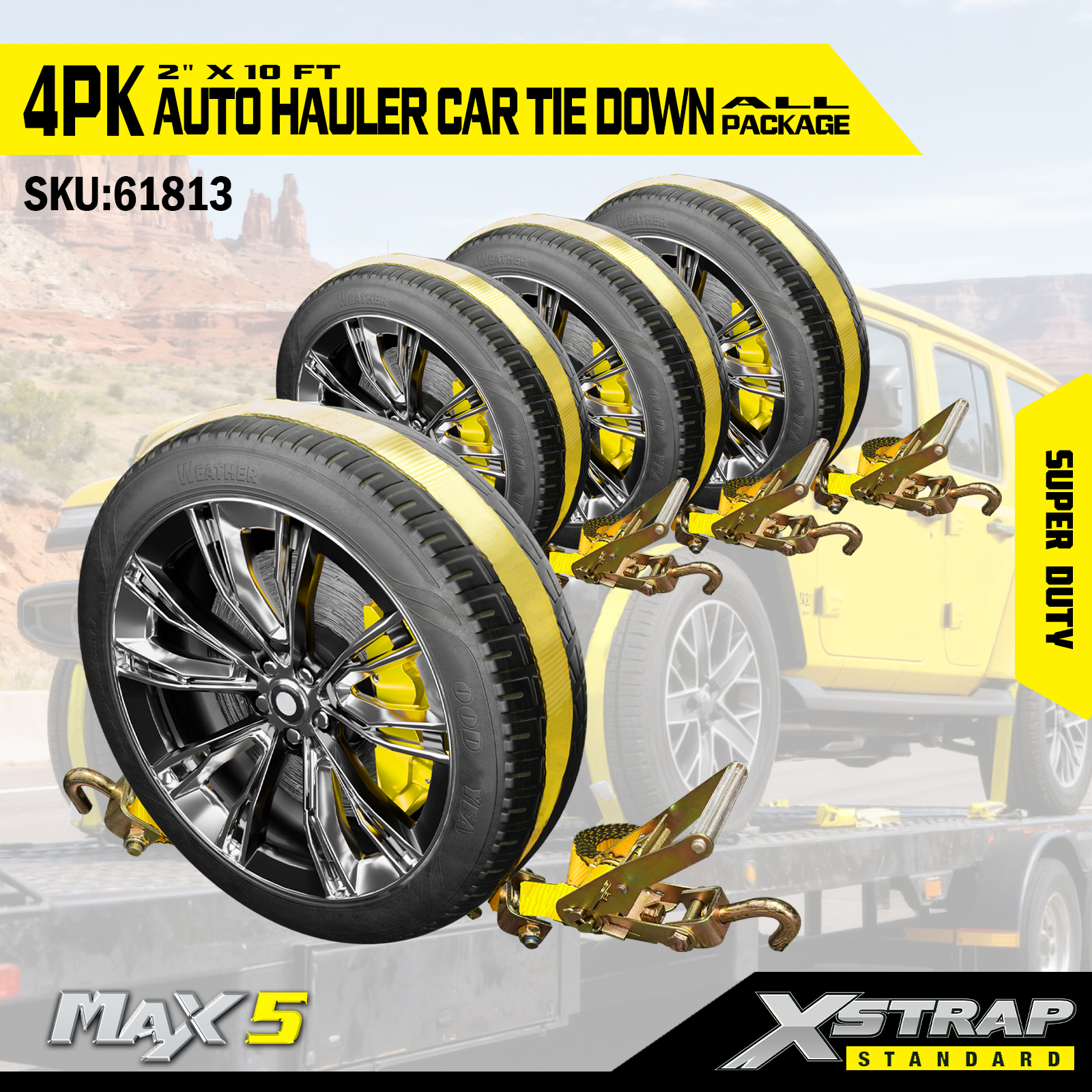 Xstrap Cinghie per trasportatore per auto Resistenti alla rottura di 6.600 libbre - Cinghie di ancoraggio per pneumatici per rimorchi, Cinghie di ancoraggio sopra le ruote con tacchetti in gomma per SUV, camion, ATV, UTV