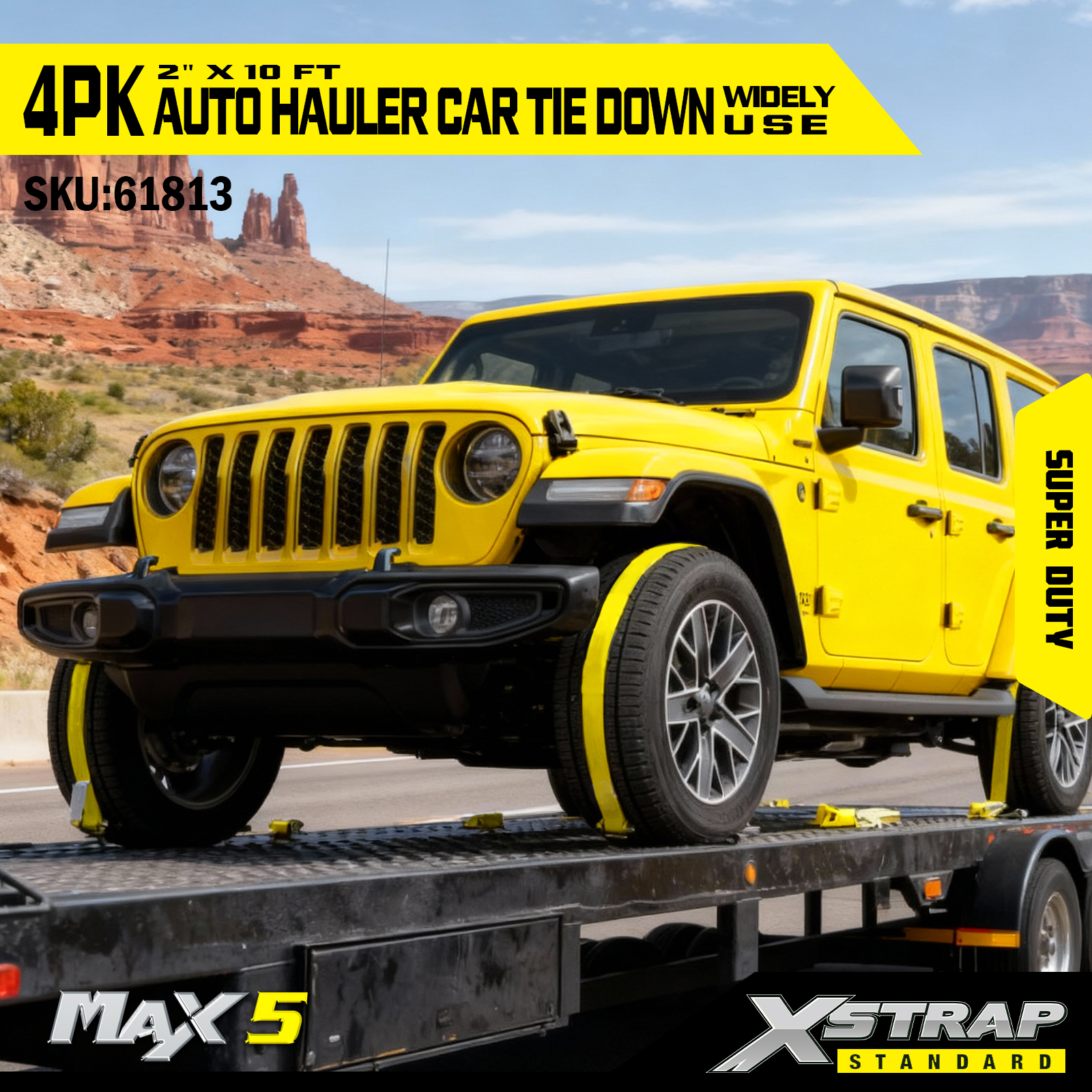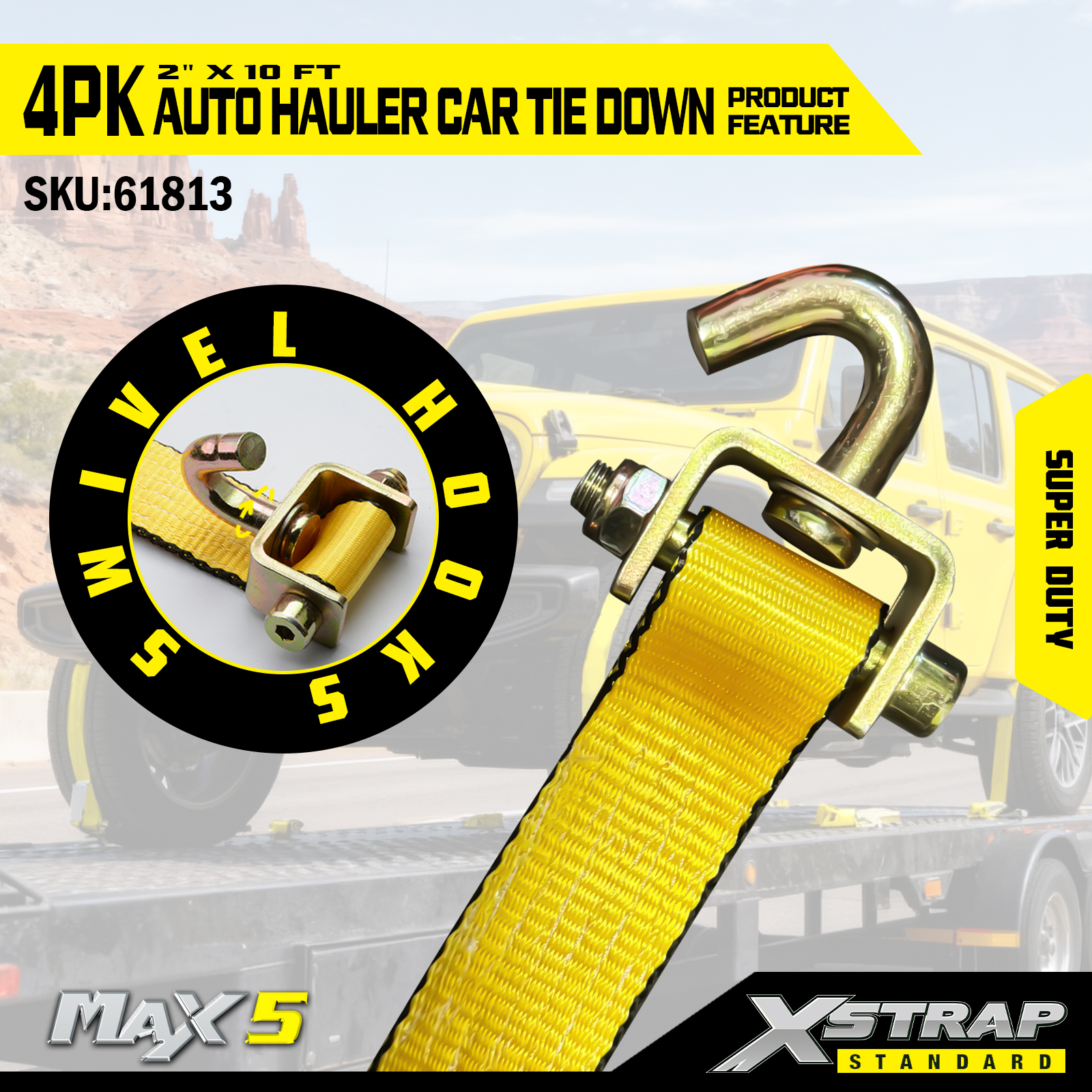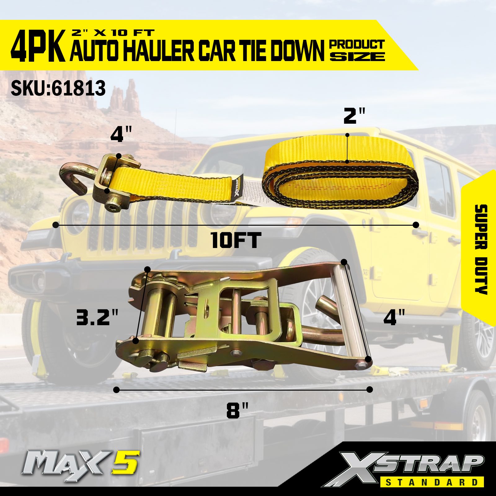 - Capacità di carico super duty: nominale per un carico di lavoro sicuro di 2.200 libbre e una resistenza alla rottura di 6.600 libbre, gestisce veicoli pesanti e condizioni di trasporto impegnative.