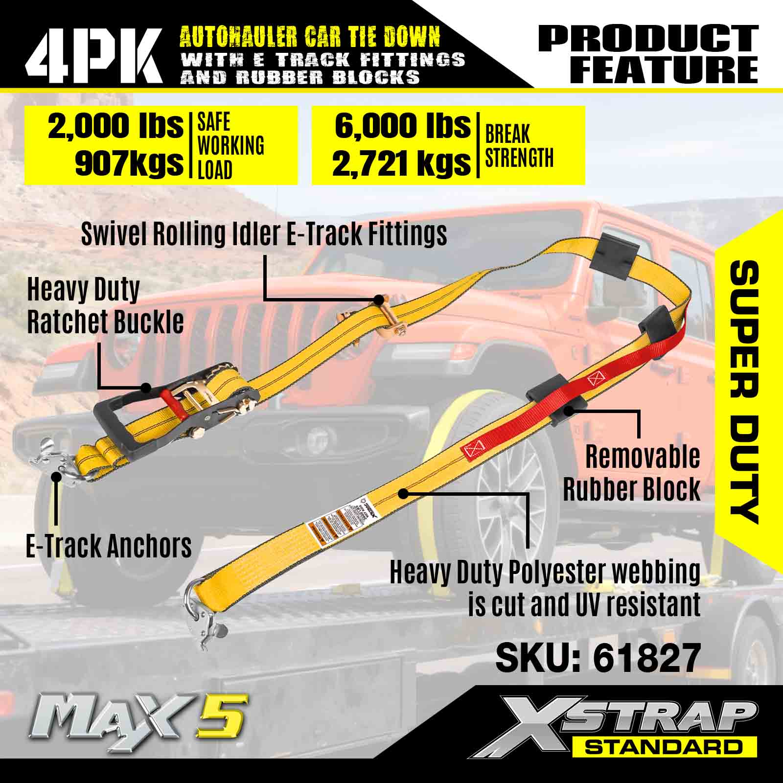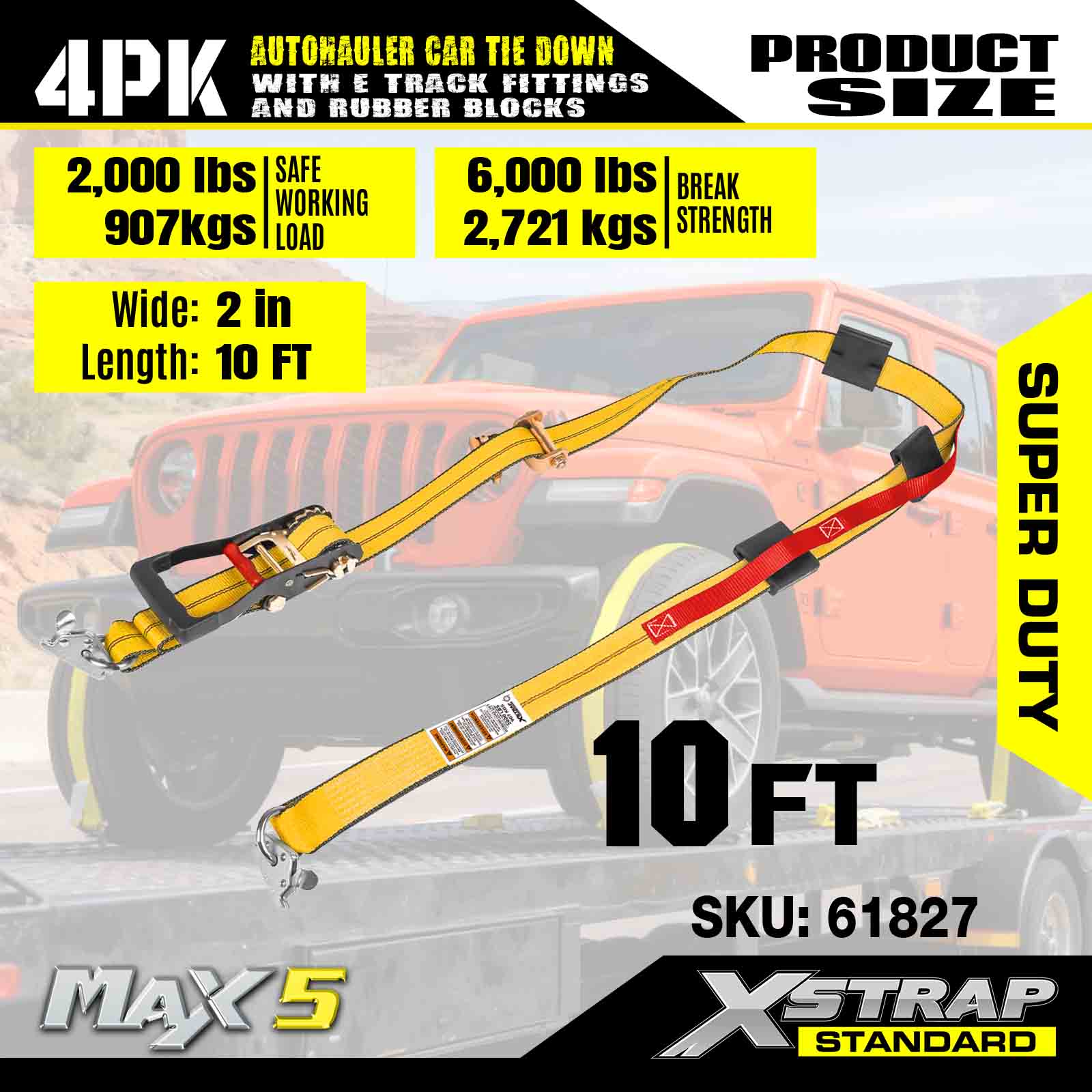 Xstrap Xstrap E Track Cinghie per pneumatici per rimorchio Heavy Duty 2" x 10' Cinghia per dumper automatici - Resistenza alla rottura garantita da 6.000 libbre - (4) Kit di ancoraggio premium per veicoli con blocchi di gomma Ancoraggi per ruote per camion, UTV