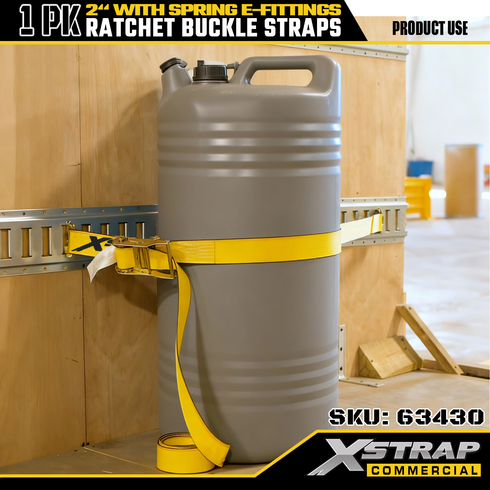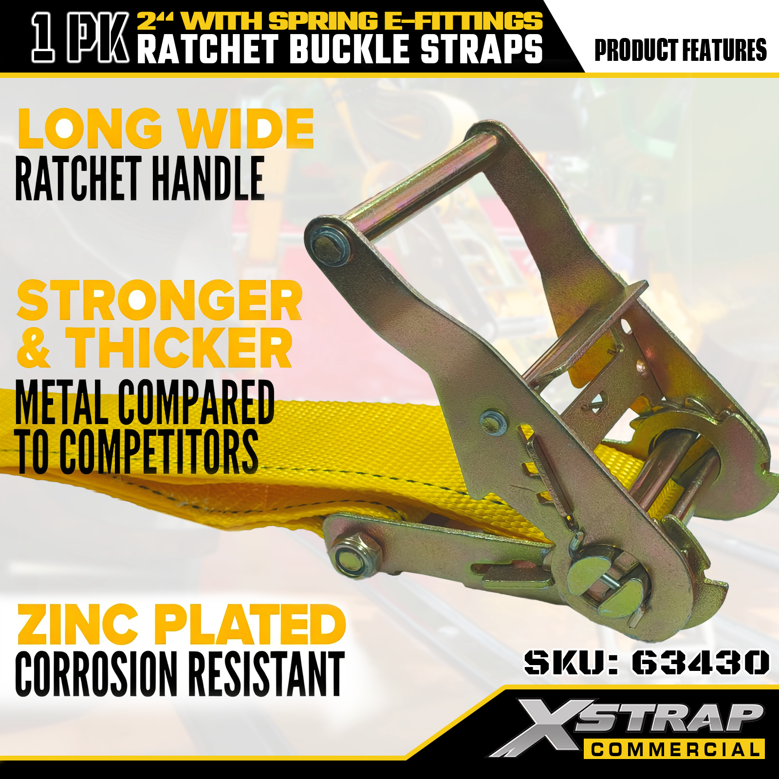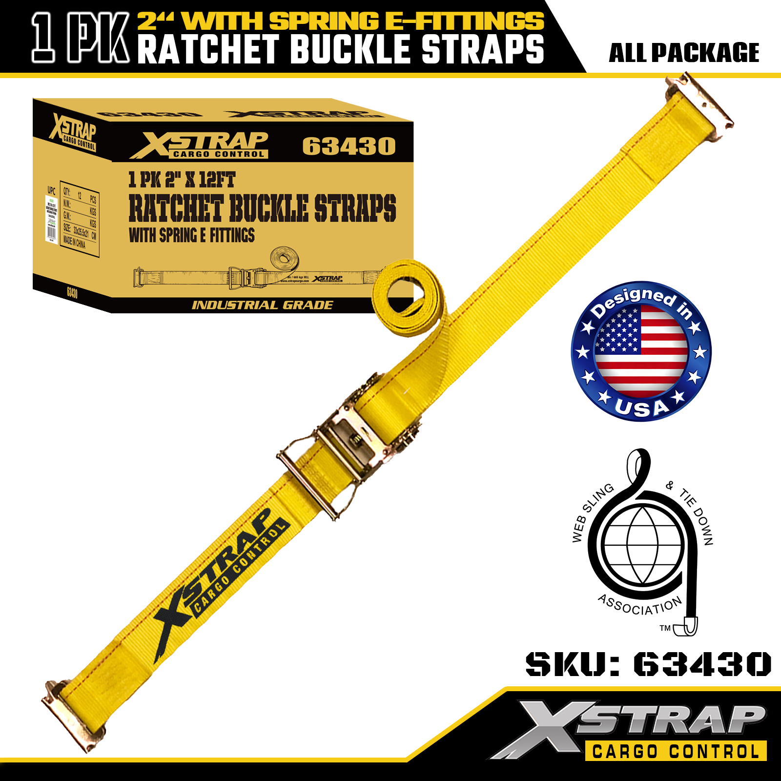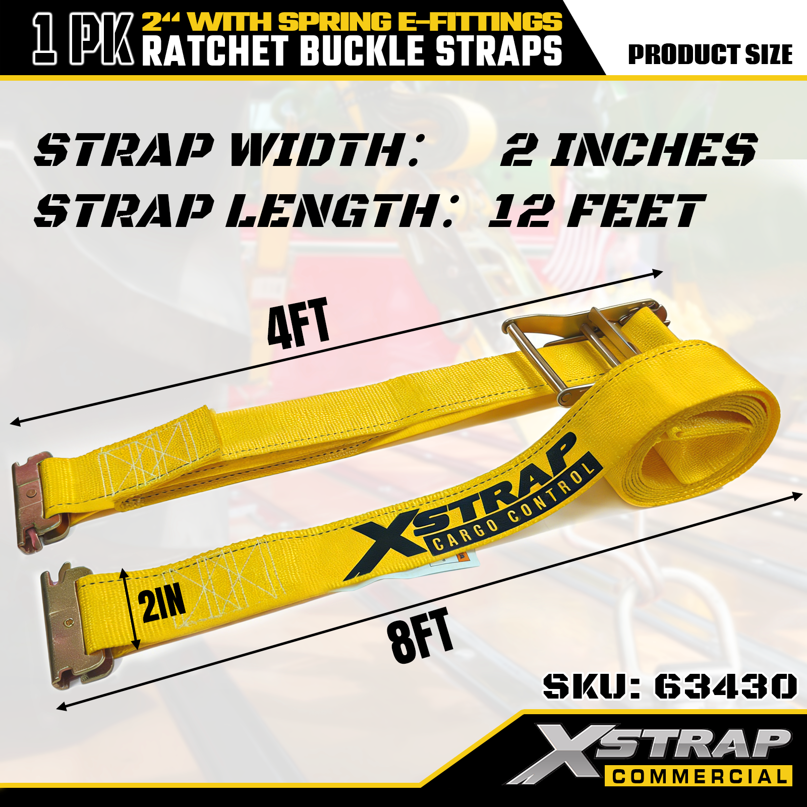 Xstrap Confezione da 1 Cinghie di ancoraggio a cricchetto in poliestere con raccordi a molla E, Cinghie di fissaggio per carichi pesanti da 2"x12', Capacità di 4.401 libbre (1.467 libbre) per camion, tosaerba, ATV