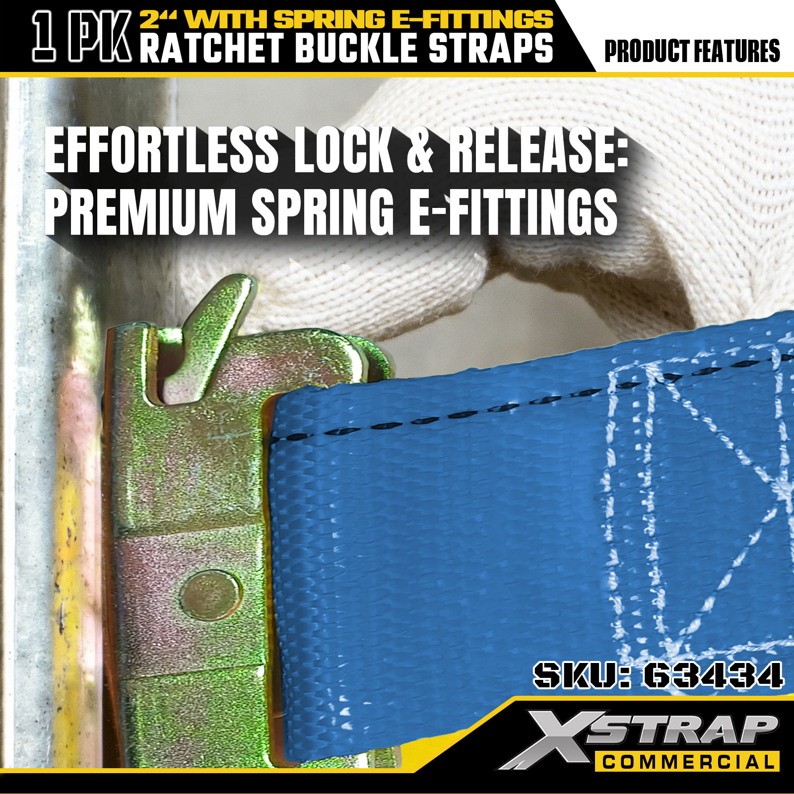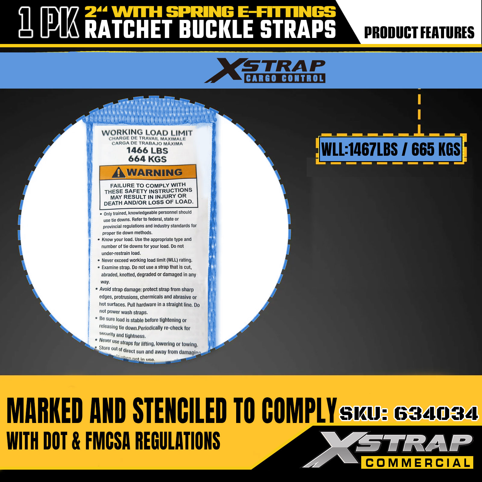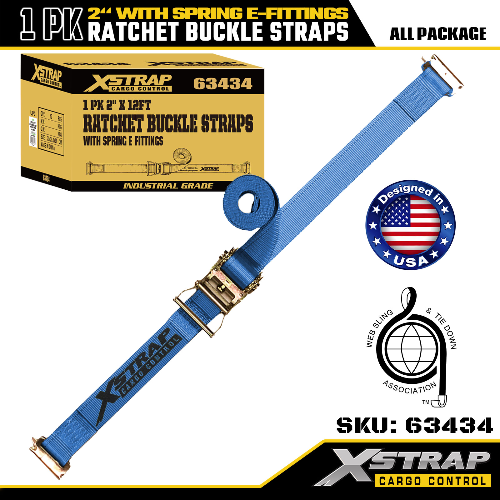 Xstrap 1 Confezione di Cinghie di Ancoraggio a Cricchetto, Cinghie di Fissaggio del Carico in Poliestere da 2"x20', Carico di Lavoro Sicuro da 1467 libbre e Resistenza alla Rottura di 4401 libbre, con Raccordi E a Molla per Camion, Tosaerba, ATV