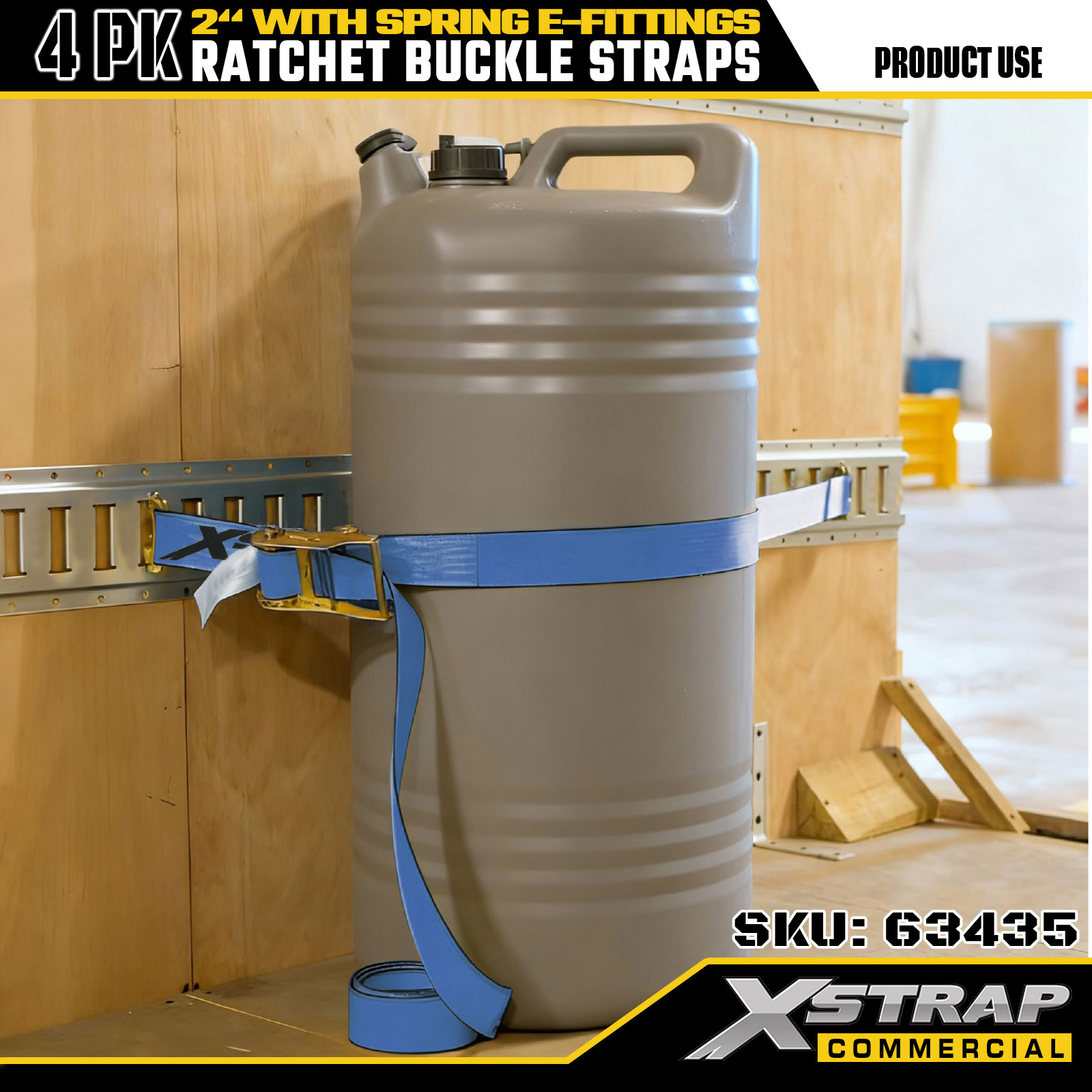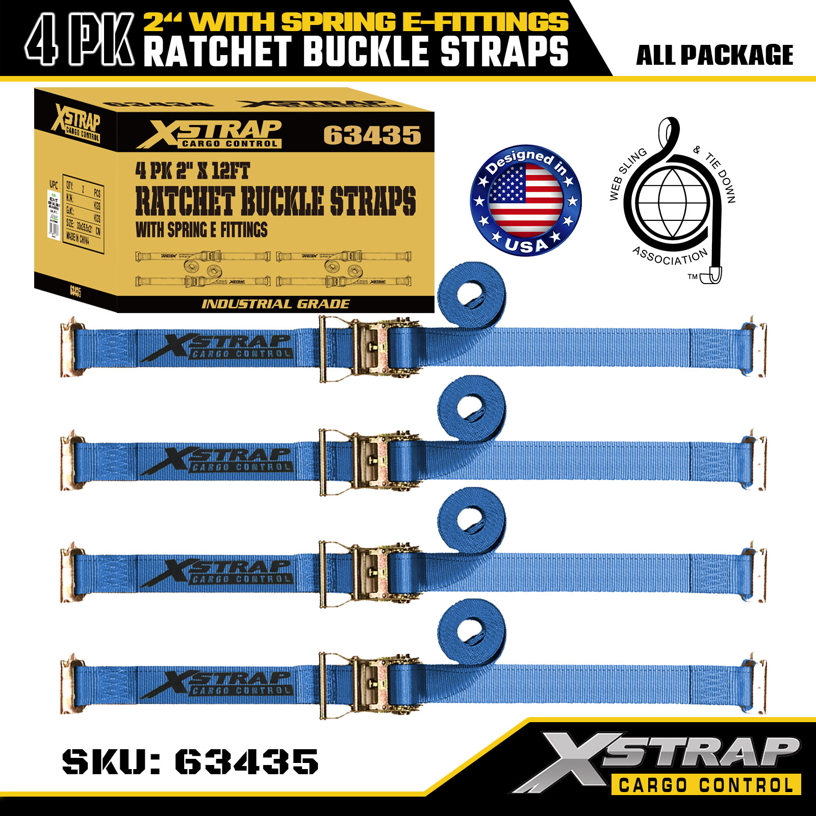 2"x12' 4PK Cinghie con fibbia a cricchetto con raccordi elettrici a molla