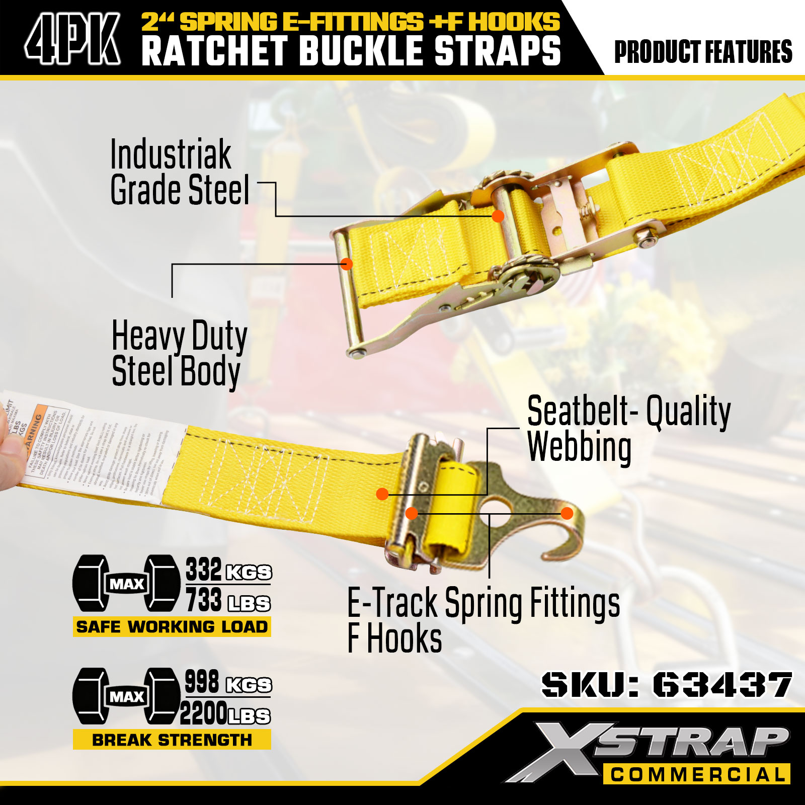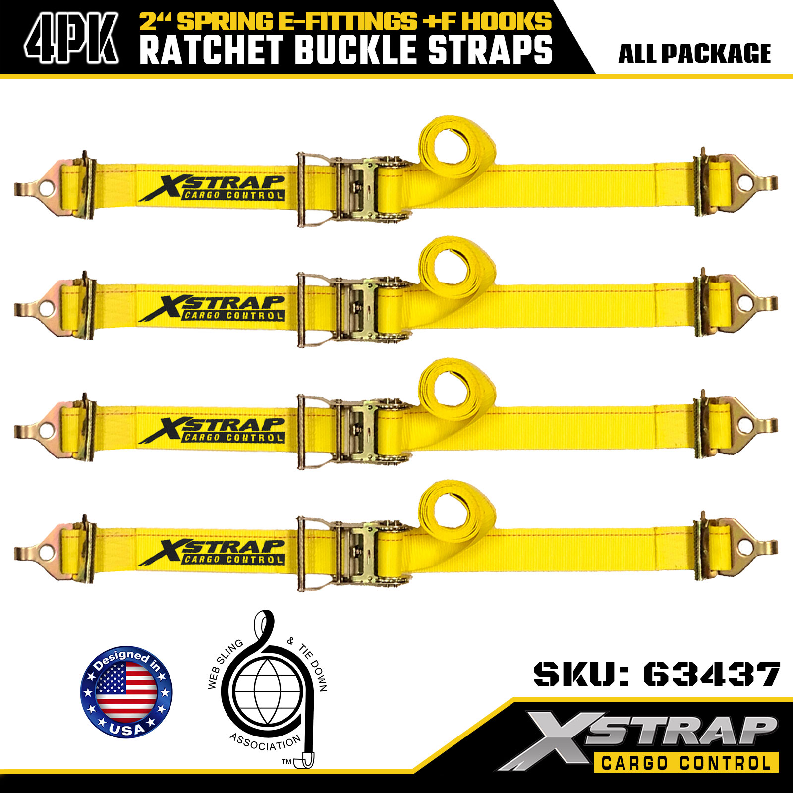 Xstrap Confezione da 4 Cinghie di ancoraggio a cricchetto per carichi pesanti, 2"x12', Poliestere ad alta resistenza con raccordi a molla E e ganci a F, Cinghie di ancoraggio per carichi pesanti da 733 libbre per rimorchi, camion, furgoni e motociclette