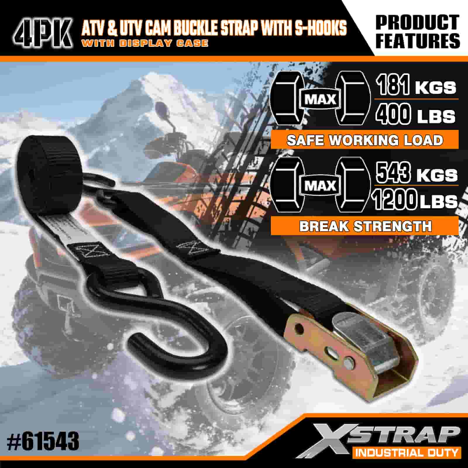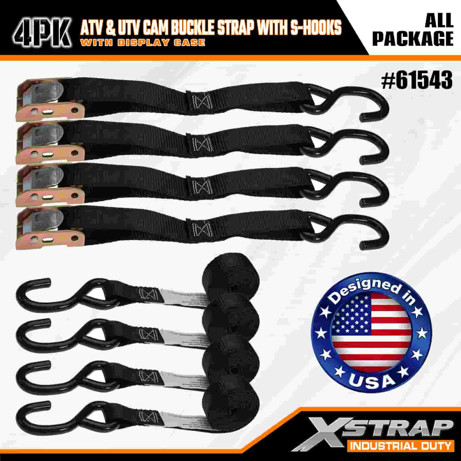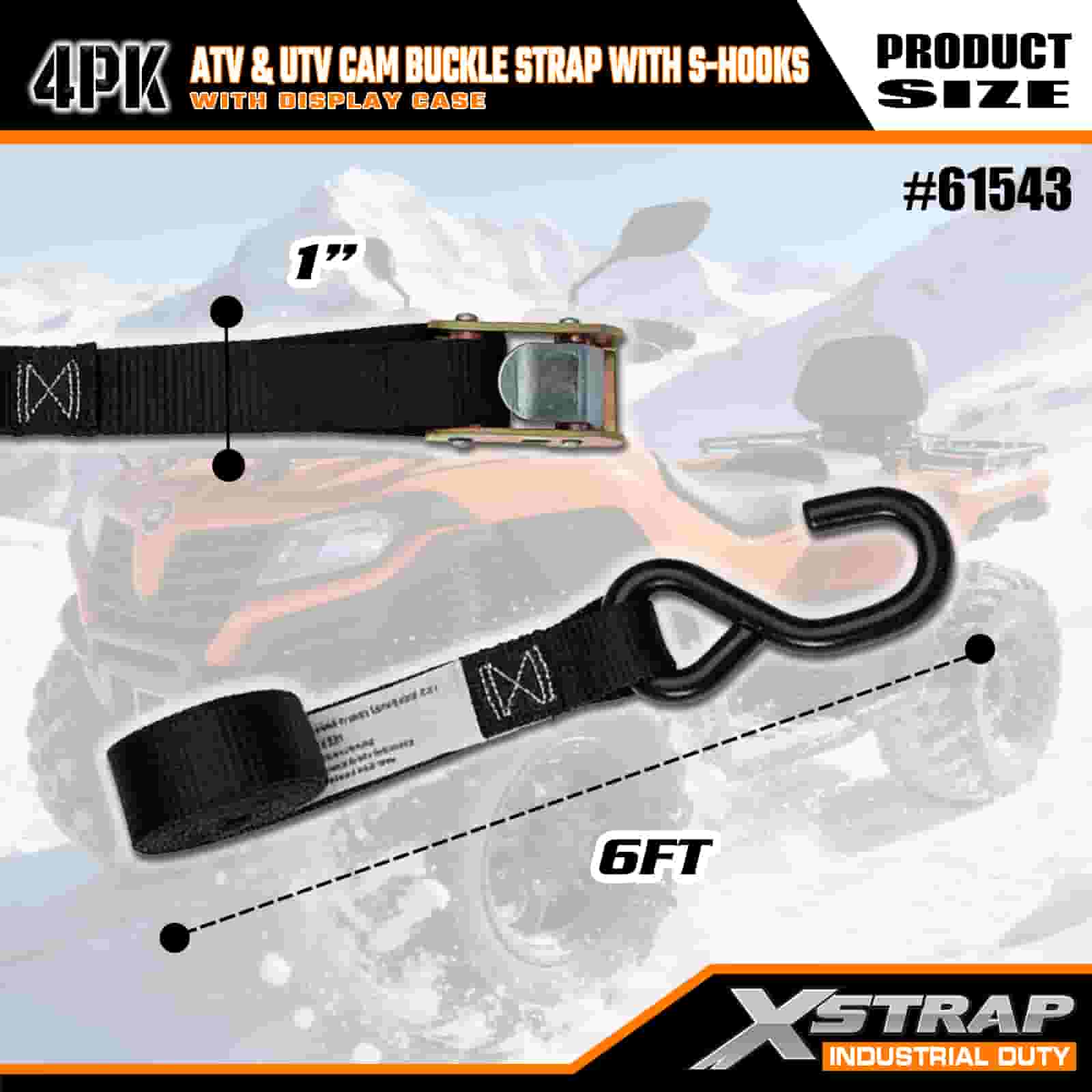 Xstrap 4PK ATV e AUV Cam con fibbia con ganci a S, cinghia di ancoraggio in poliestere da 1" x 6' con fibbia a cricchetto, capacità di 400 libbre Cinghie di fissaggio per ancoraggio del carico con gancio a S per i professionisti seri per fissare rimorchi di carico, rimorchi a pianale, barche da sci, piccole auto.
