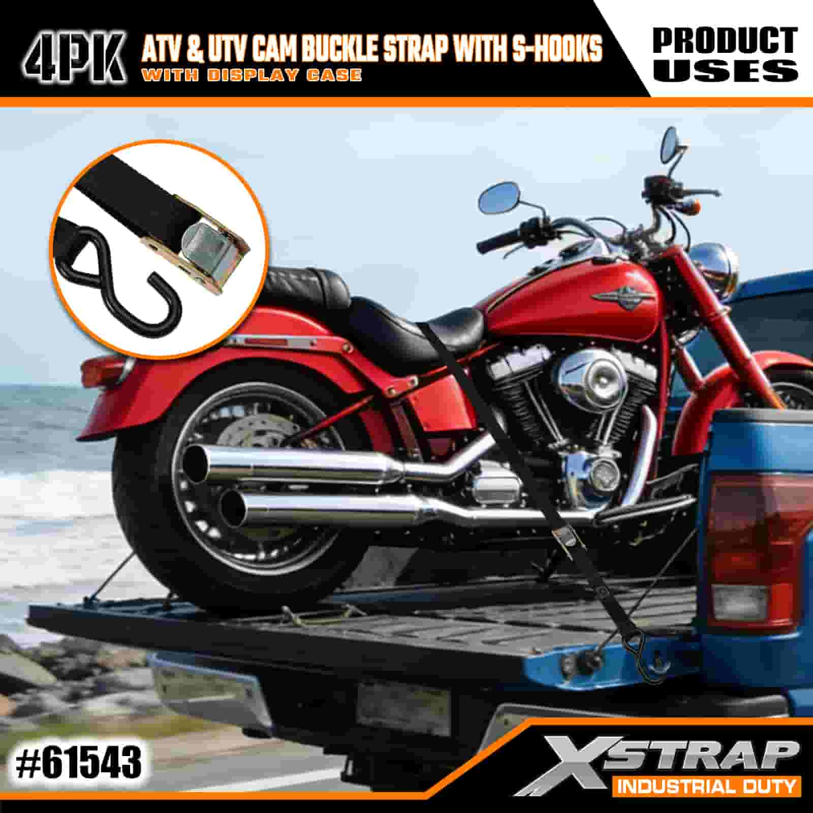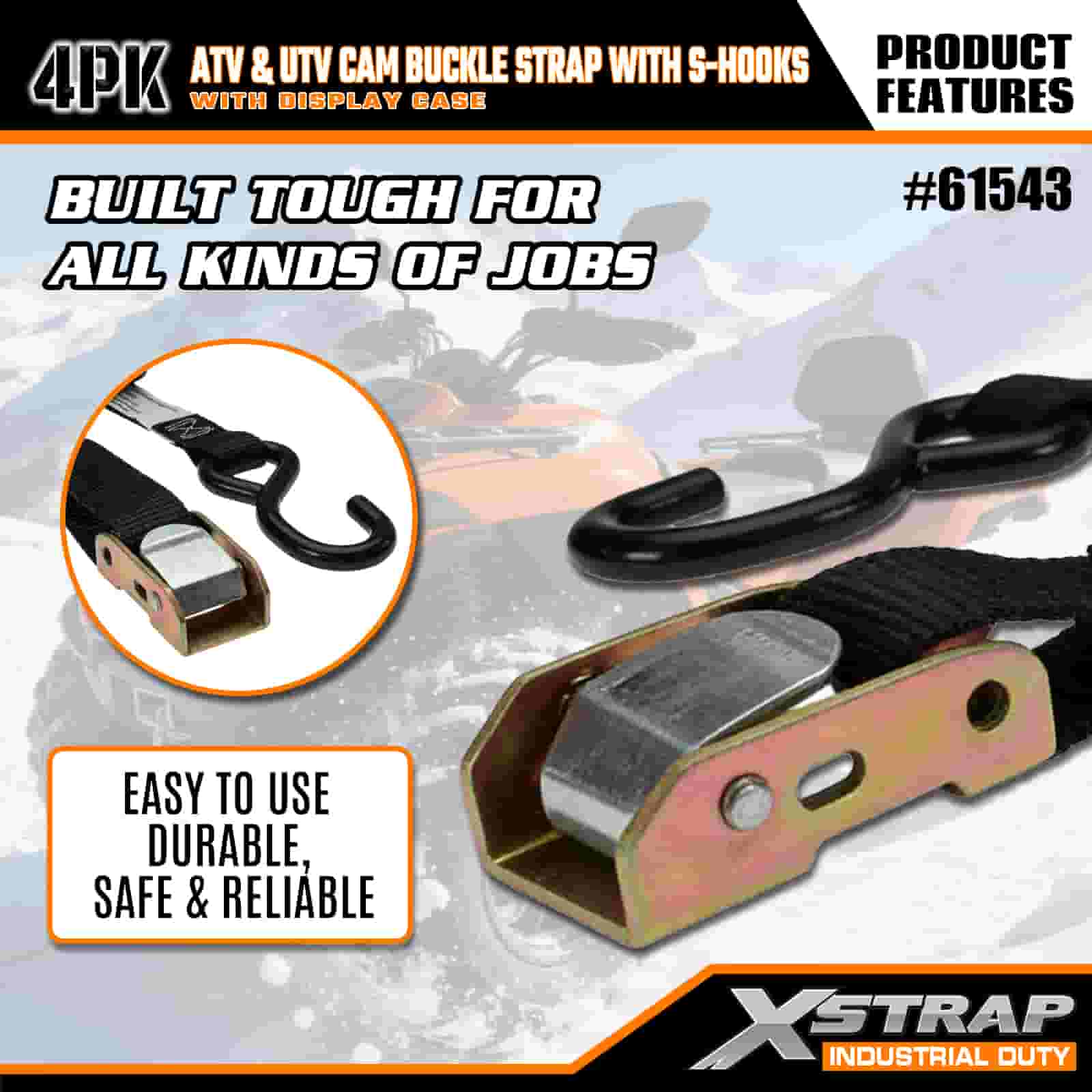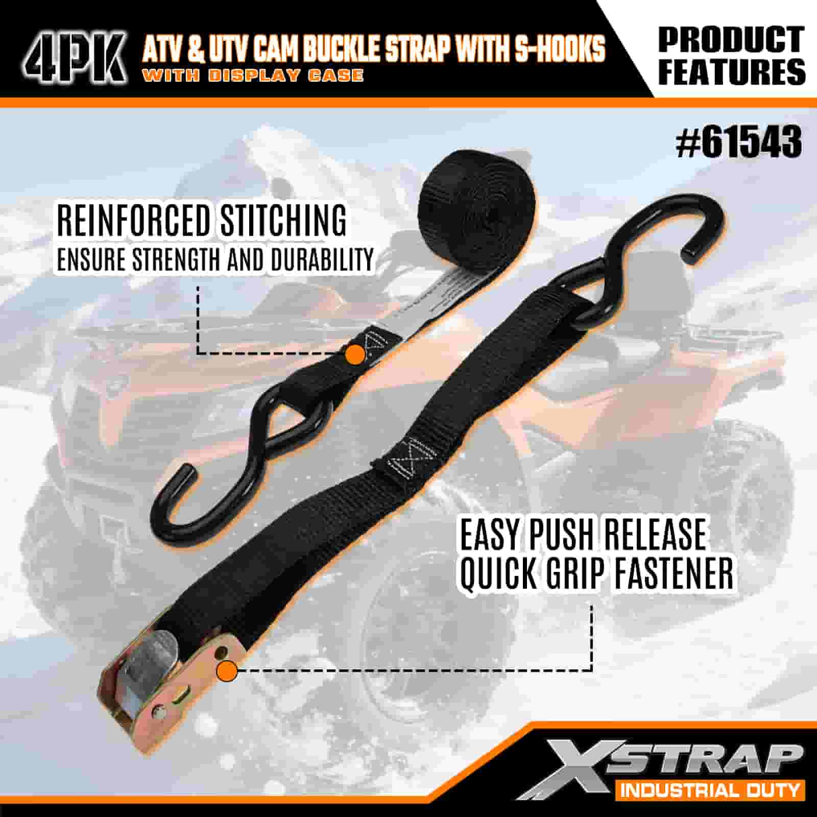 Xstrap 4PK ATV e AUV Cam con fibbia con ganci a S, cinghia di ancoraggio in poliestere da 1" x 6' con fibbia a cricchetto, capacità di 400 libbre Cinghie di fissaggio per ancoraggio del carico con gancio a S per i professionisti seri per fissare rimorchi di carico, rimorchi a pianale, barche da sci, piccole auto.