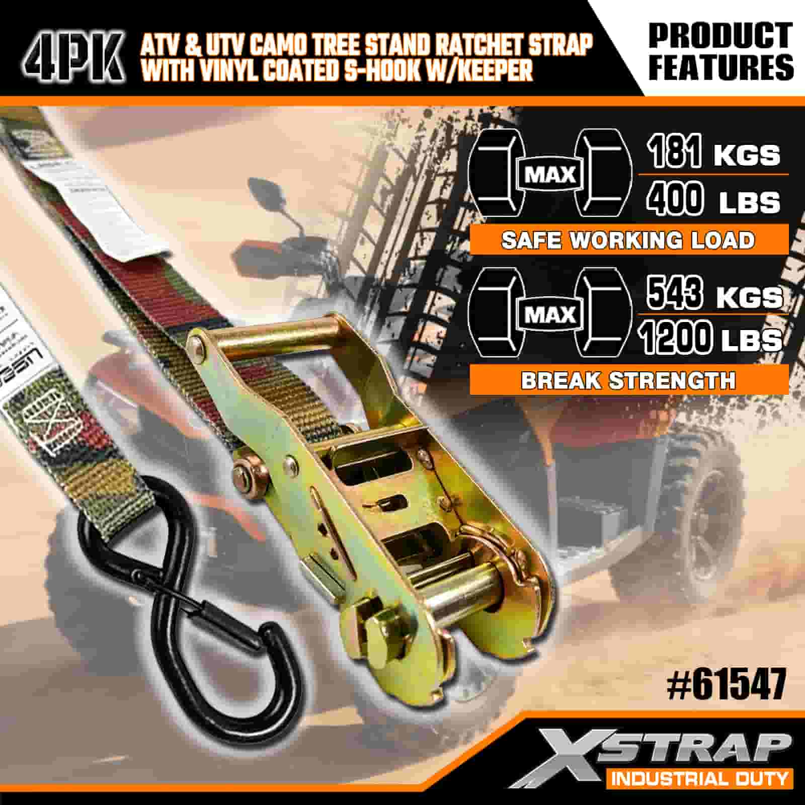 - Confezione da 4 per una copertura completa: questo set include 4 cinghie, sufficienti per fissare sia la parte anteriore che quella posteriore del tuo ATV o UTV. La lunghezza di 8 piedi si adatta ai pianali dei camion, ai punti di ancoraggio del rimorchio e agli ancoraggi del supporto per alberi, in modo da ottenere ogni volta una presa stabile.