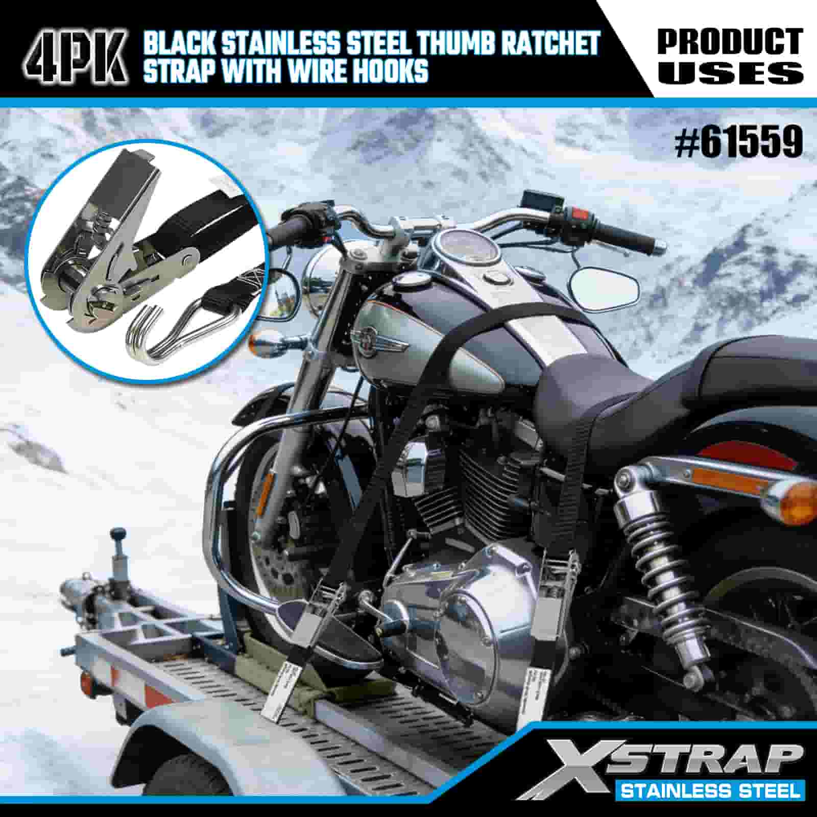 - Avventura e industria Robusta, costruita per offrire prestazioni Progettata sia per il trasporto di motociclette fuoristrada che per l'uso in cantieri pesanti, questa cinghia a cricchetto in acciaio inossidabile è costruita per affrontare fango, neve e usura quotidiana. Affidati ai 20 anni di esperienza di XStrap nel controllo del carico per una stiva su cui puoi fare affidamento, indipendentemente dal terreno.