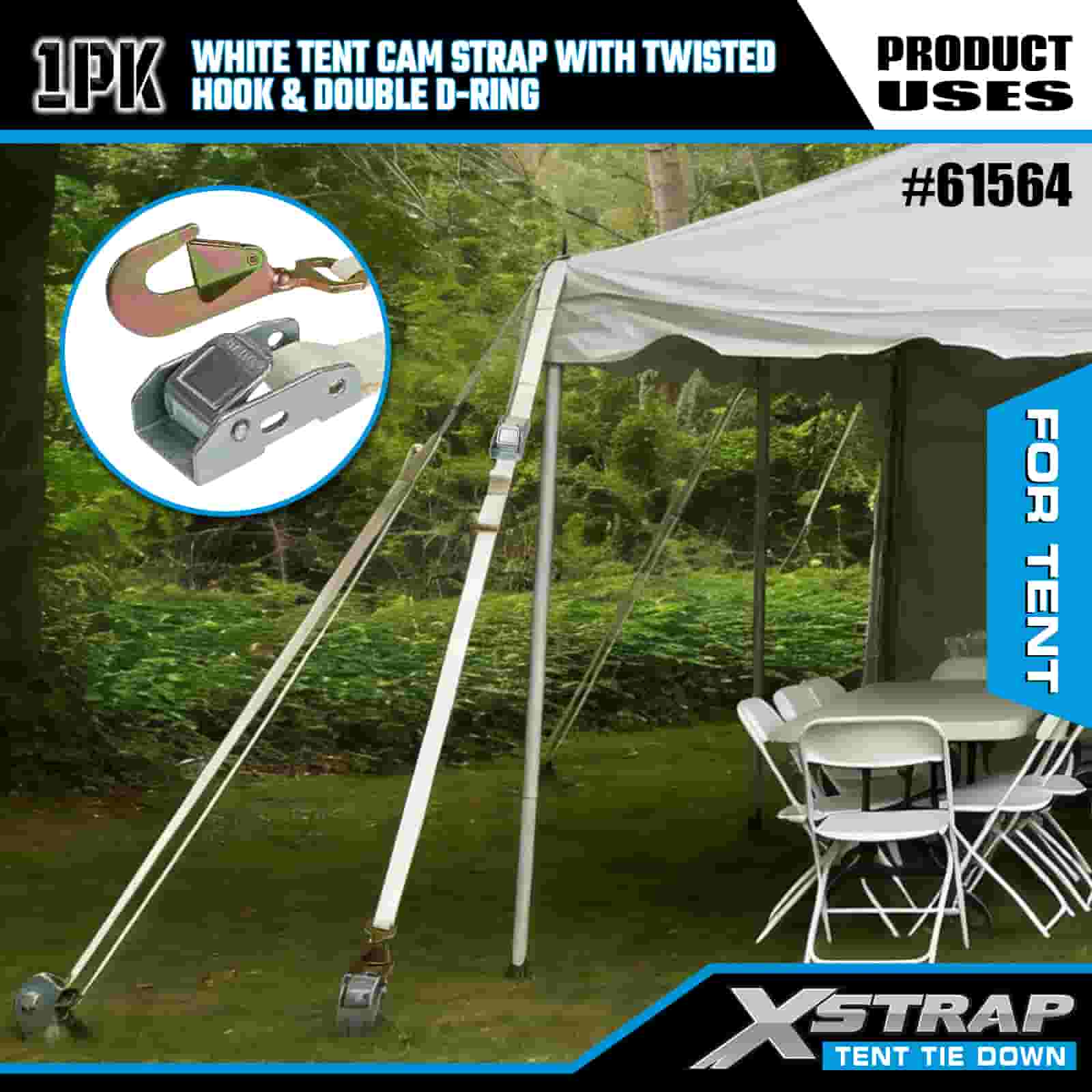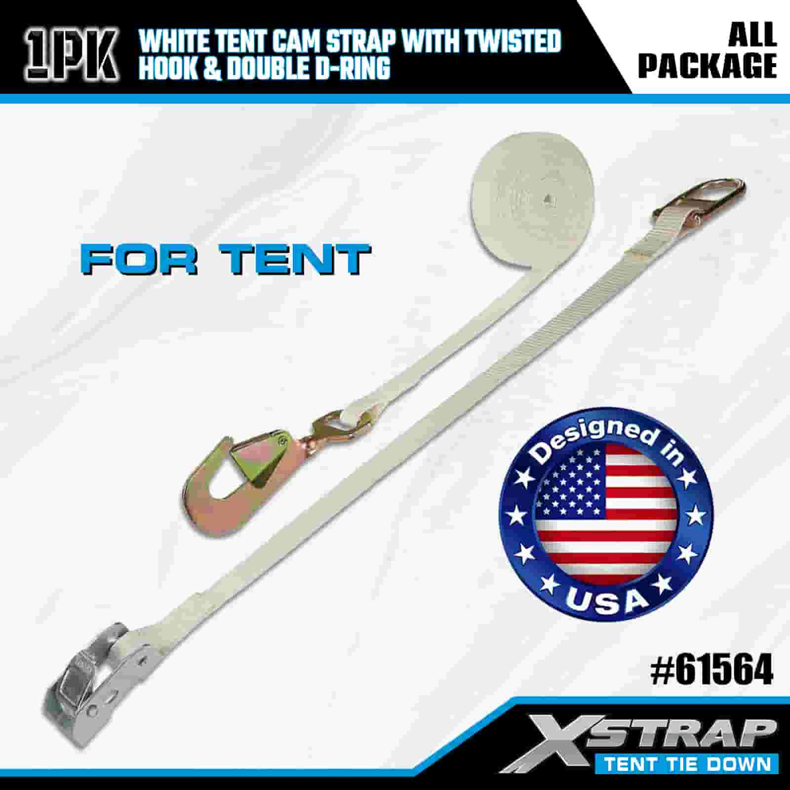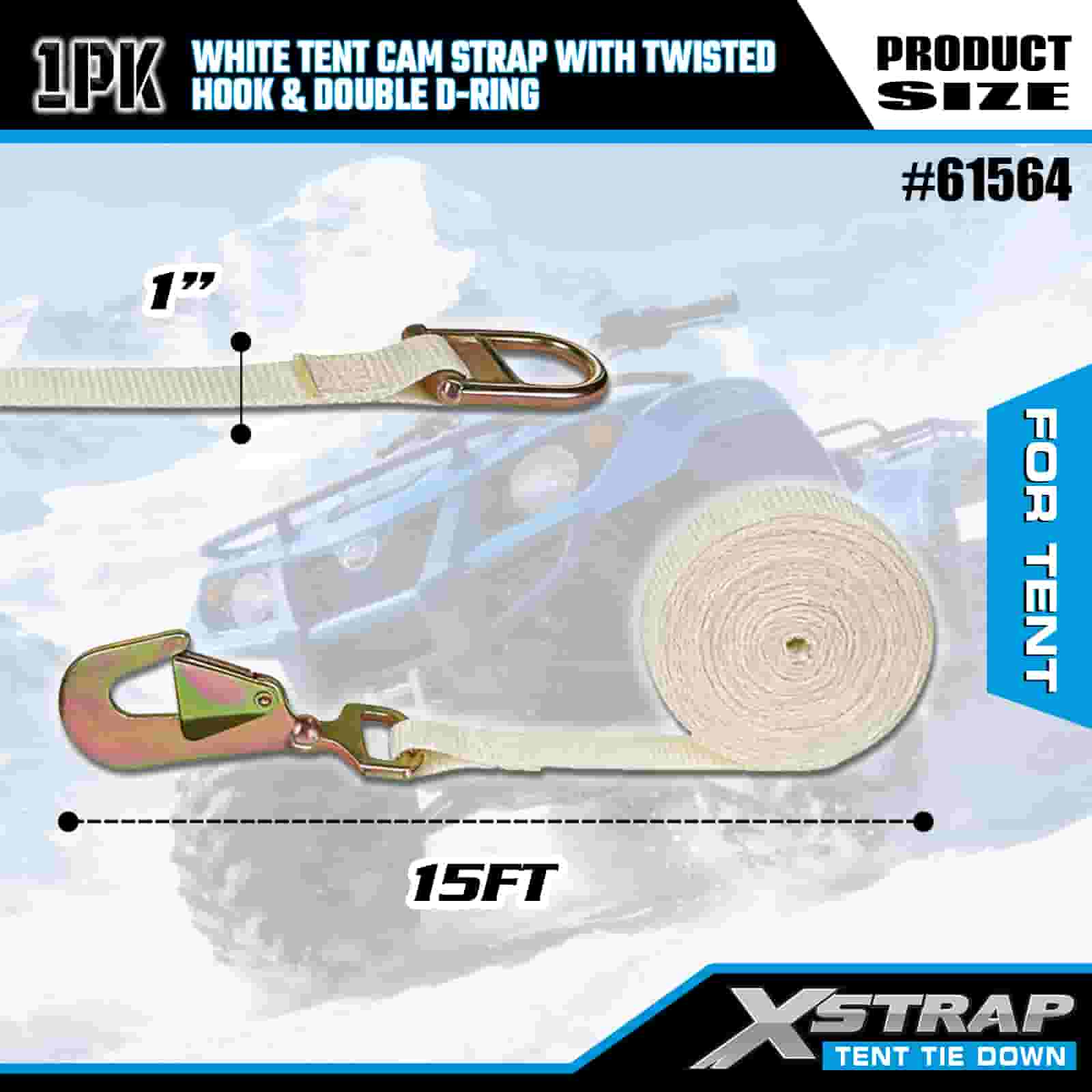 Xstrap Cinghia bianca per camma per tenda con gancio attorcigliato e doppio anello a D, cinghia a cricchetto in poliestere da 1" x 15', cinghie di fissaggio per carico con capacità di 440 libbre con Gancio attorcigliato e anello a doppia D per il controllo del carico, fissaggio della tenda.