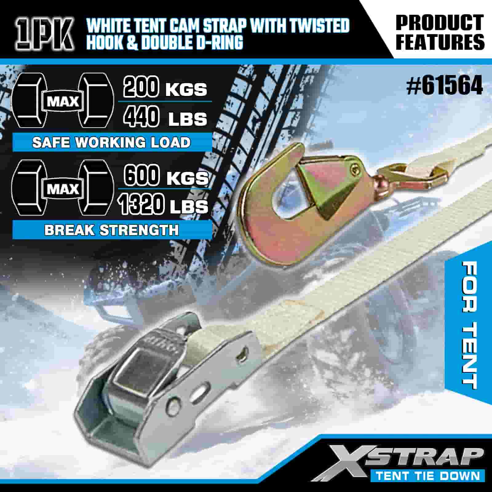 - Essenziale per campeggio ed eventi, costruito per il vento e le intemperie: progettato specificamente per proteggere tende, tettoie e rifugi per eventi, questo cinturino a camma mantiene stabile la tua configurazione esterna anche in caso di raffiche di vento o pioggia. I 20 anni di esperienza di XStrap nel controllo del carico garantiscono che il tuo rifugio rimanga ancorato, indipendentemente dalle previsioni.