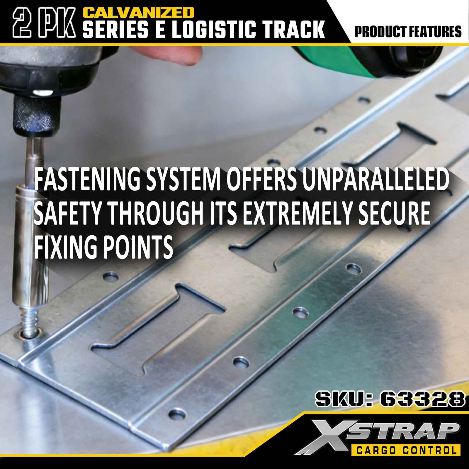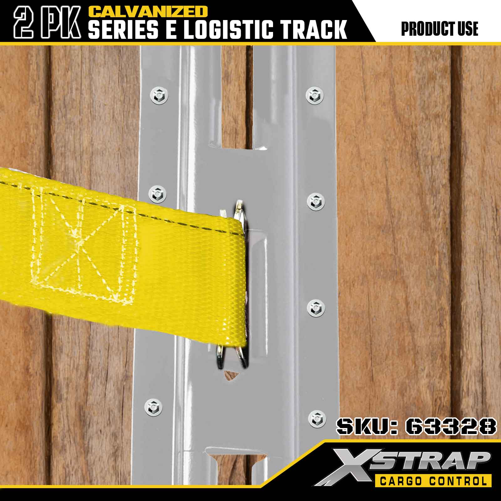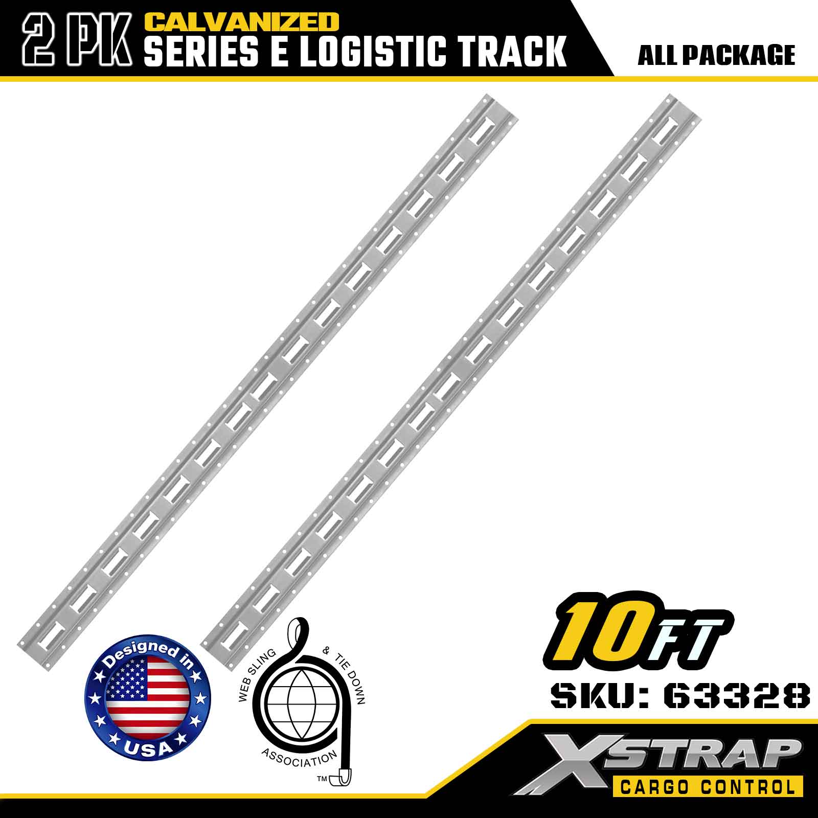 Xstrap 63328 Binario di ancoraggio E-Track da 10 piedi in argento elettrolitico - Acciaio calibro 12 con finitura zincata, capacità di carico di 6000 libbre, confezione da 2 per il fissaggio del carico