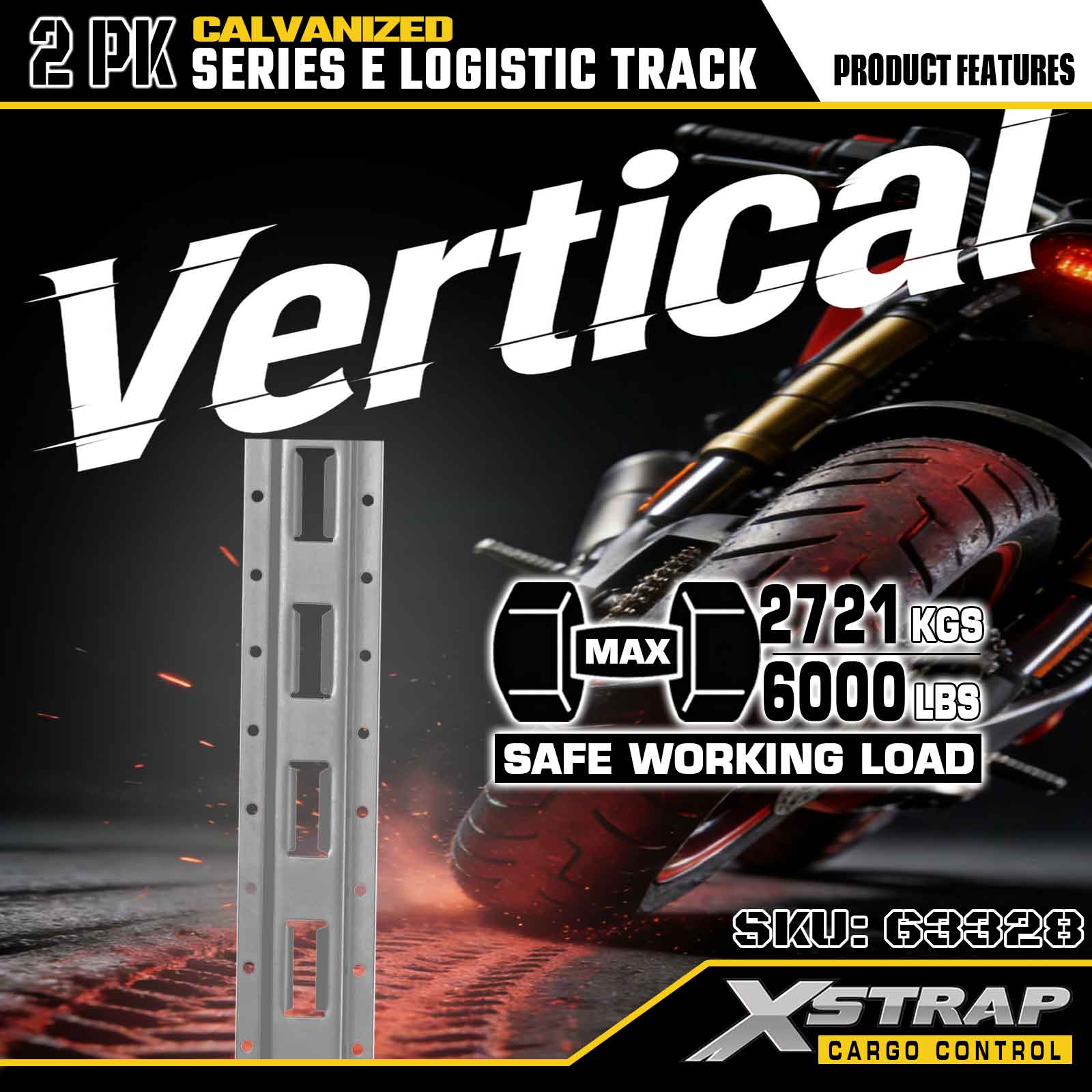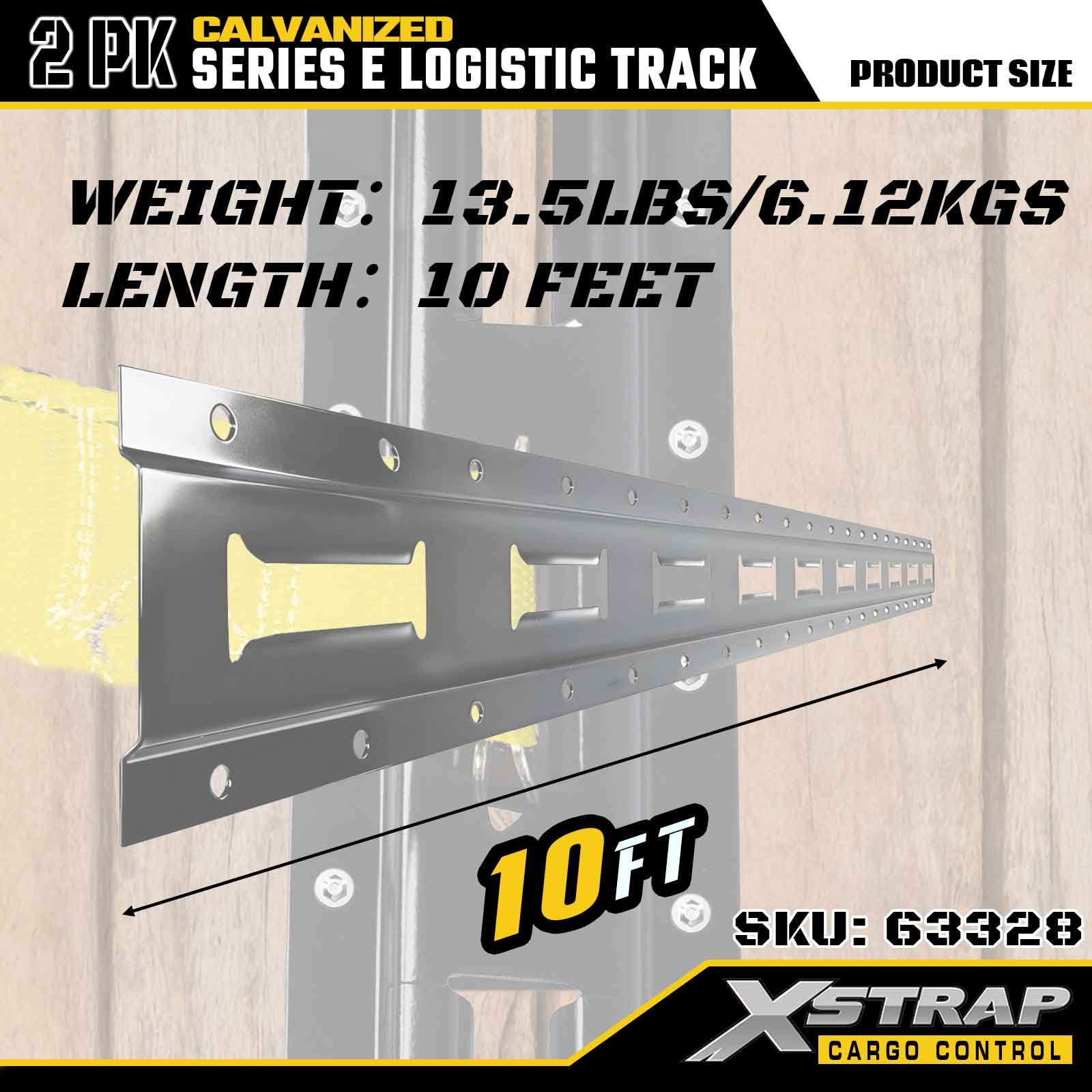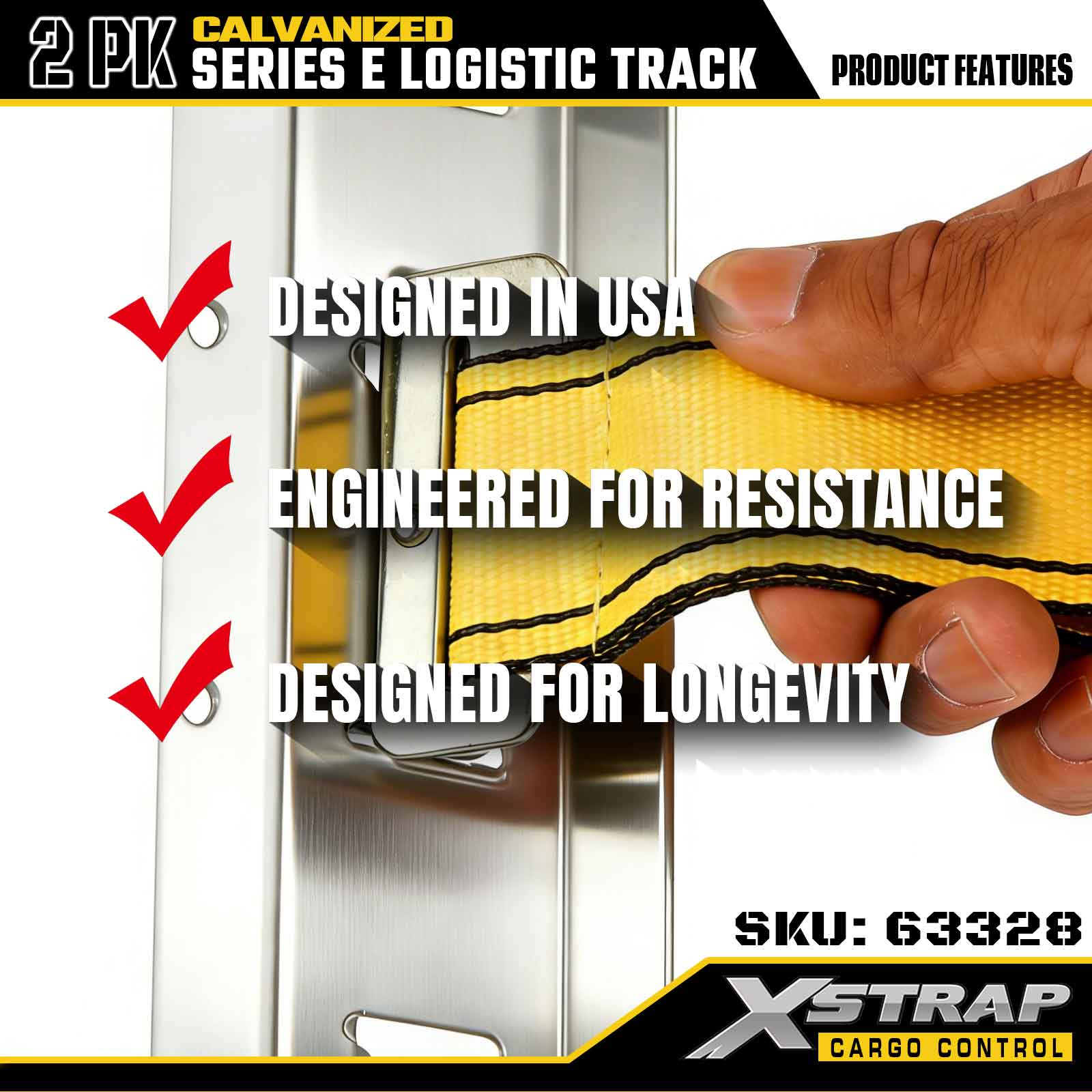 Xstrap 63328 Binario di ancoraggio E-Track da 10 piedi in argento elettrolitico - Acciaio calibro 12 con finitura zincata, capacità di carico di 6000 libbre, confezione da 2 per il fissaggio del carico