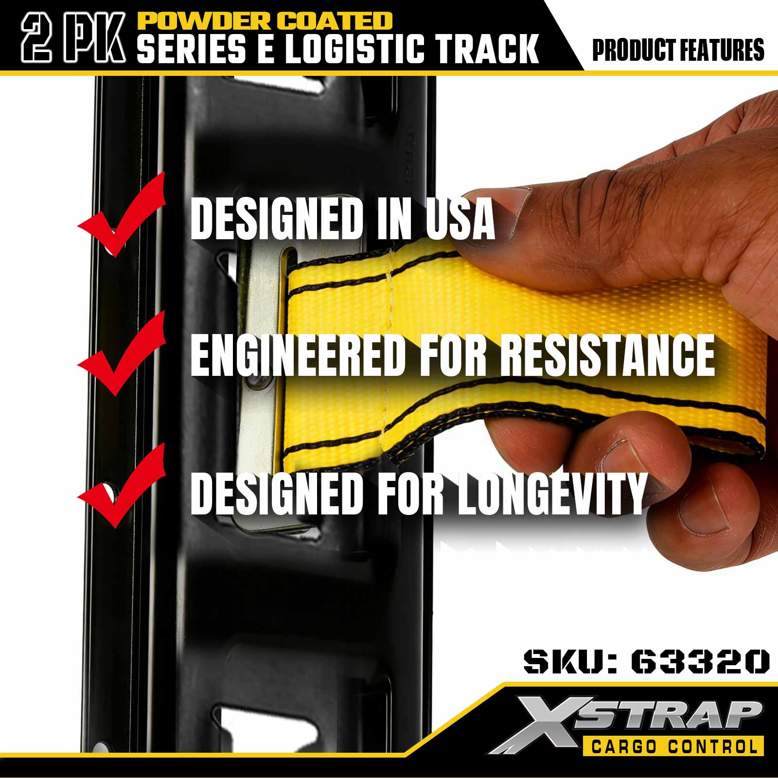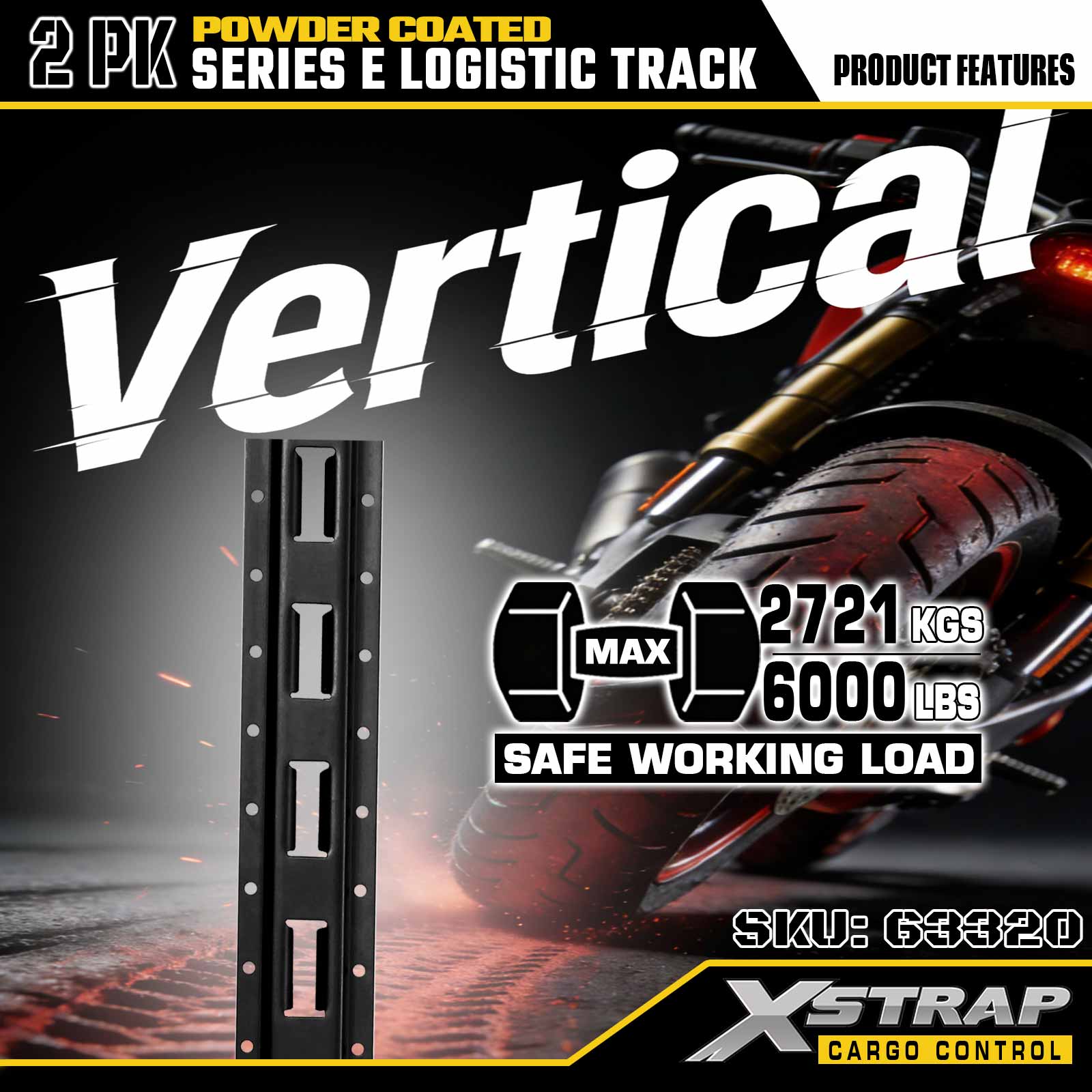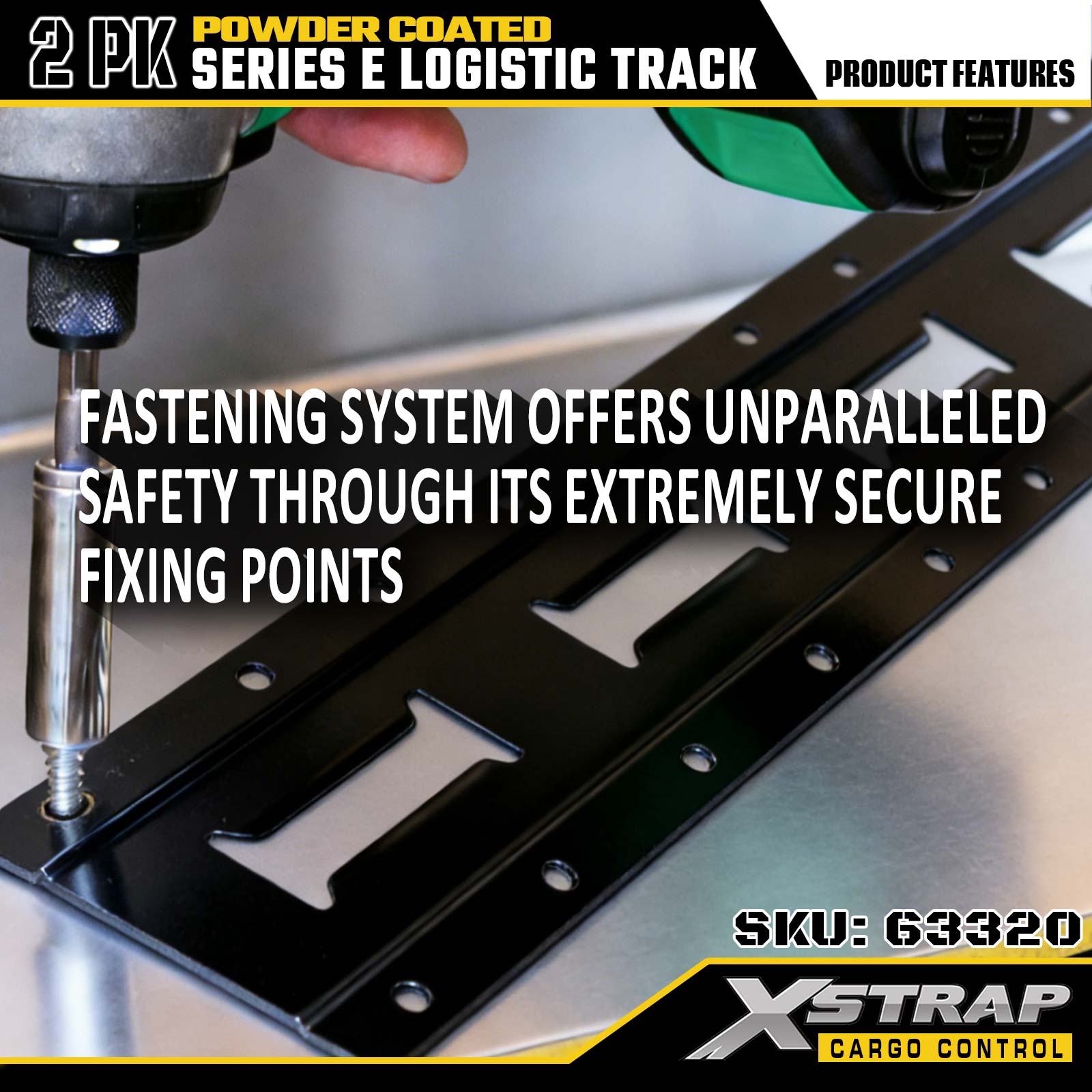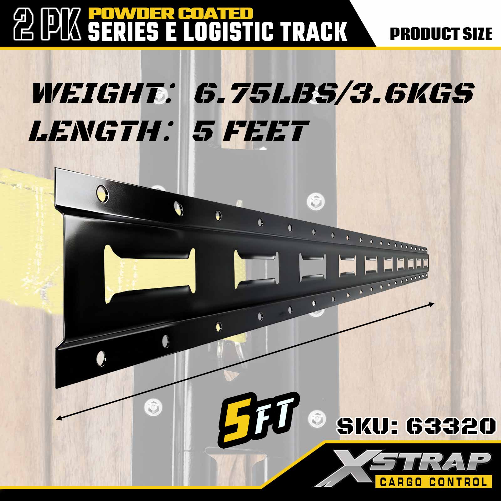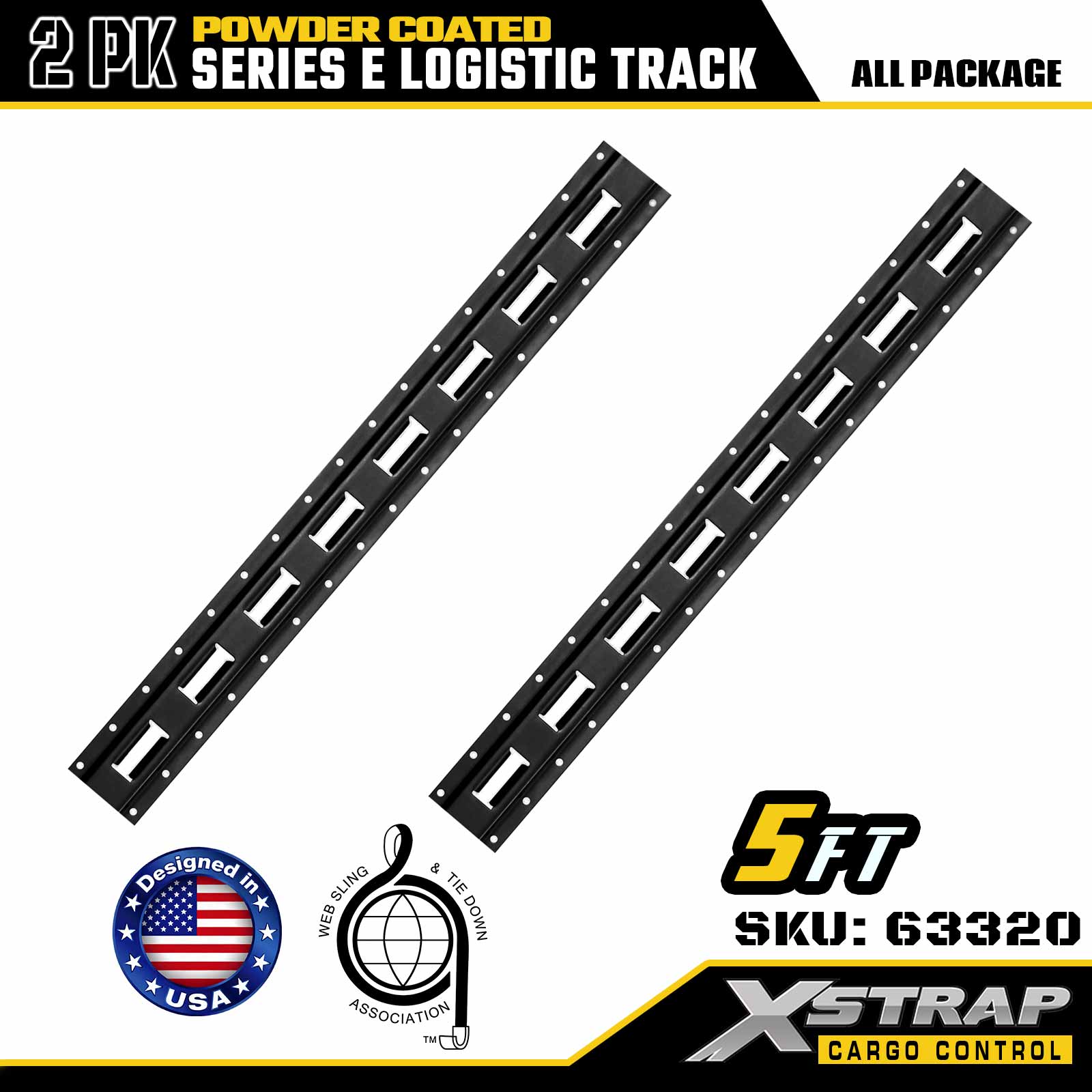 Xstrap 63320 5 ' Binario logistico grigio di tipo E - Acciaio calibro 12 con rivestimento a polvere, capacità di carico di 6000 libbre, 2 pezzi per ritenuta del carico