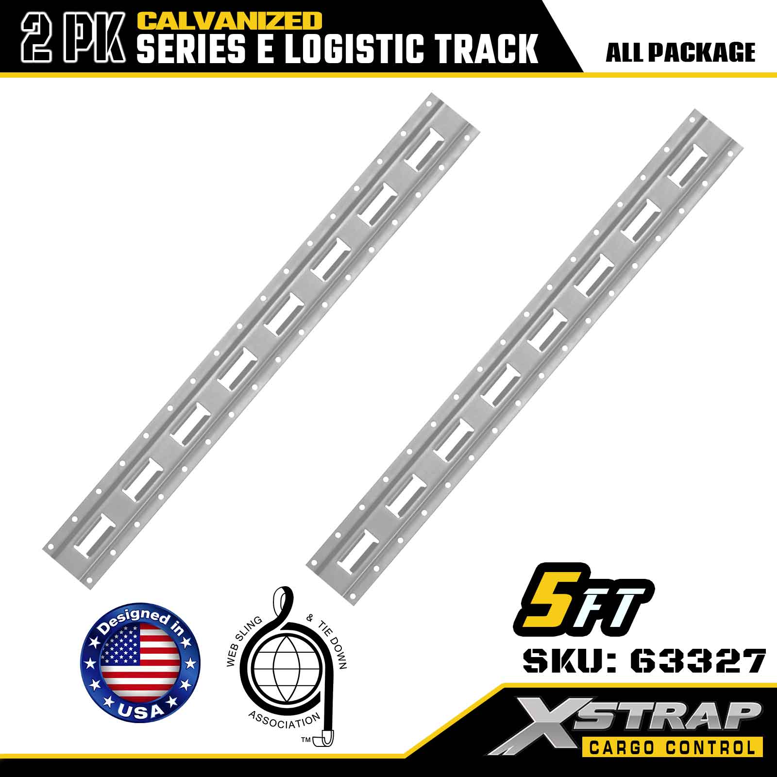 Xstrap 63327 Binario di ancoraggio per carico E-Track da 5 piedi, argento elettrolitico, acciaio calibro 12 con zincatura a caldo, capacità di peso di 6000 libbre, confezione da 2 per il fissaggio del carico