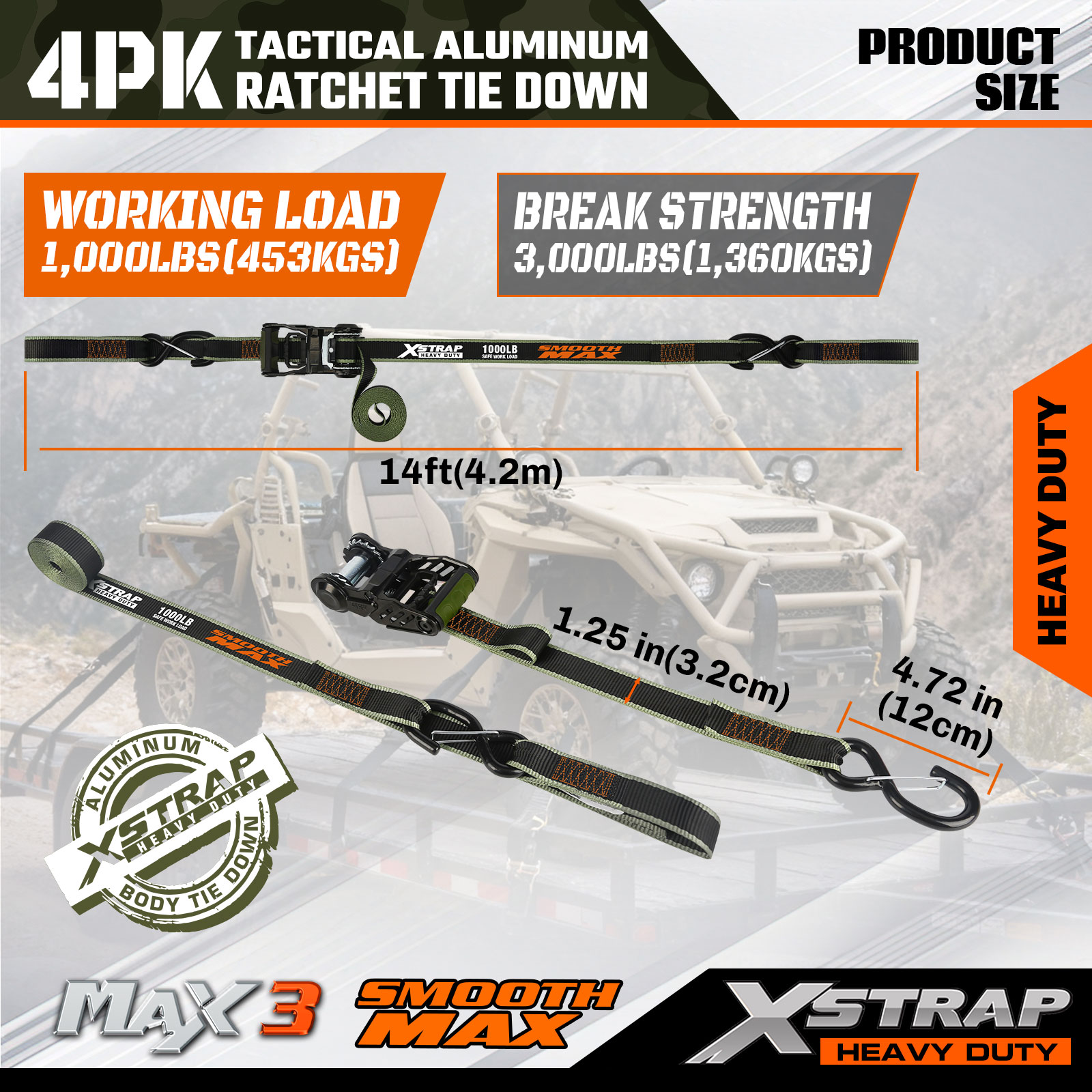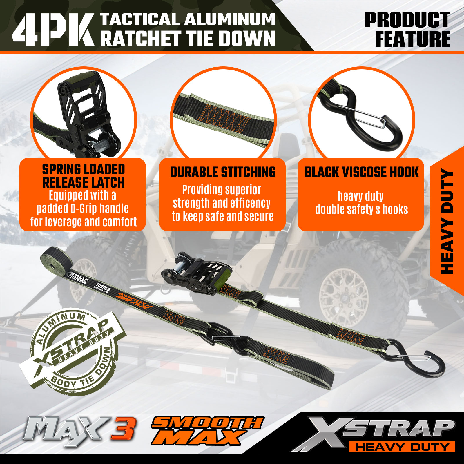 Cinghie di ancoraggio tattiche a cricchetto Xstrap da 1,25 x 12 piedi, 1.000 libbre SWL
