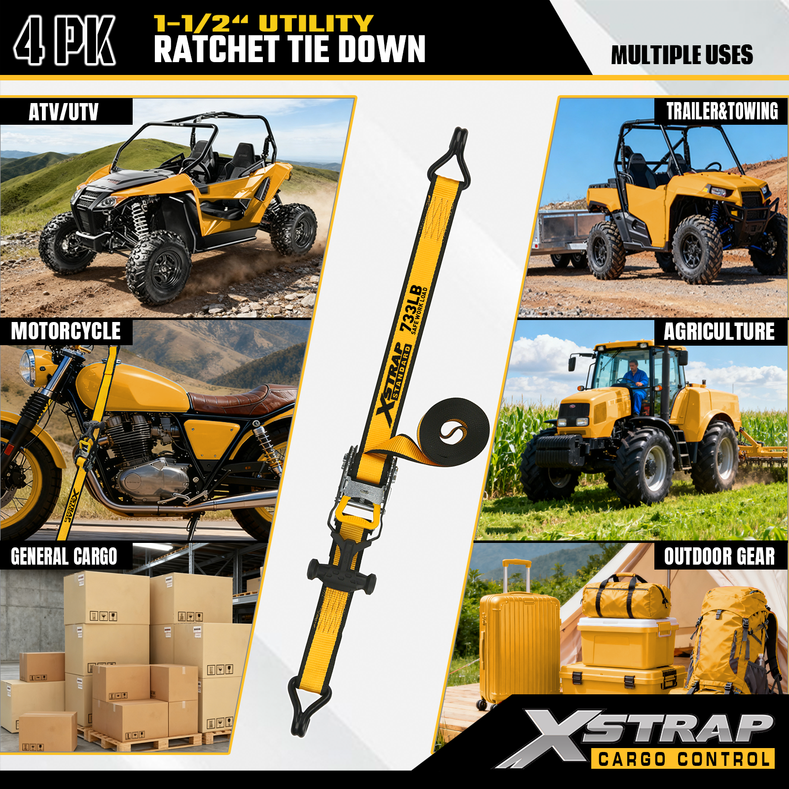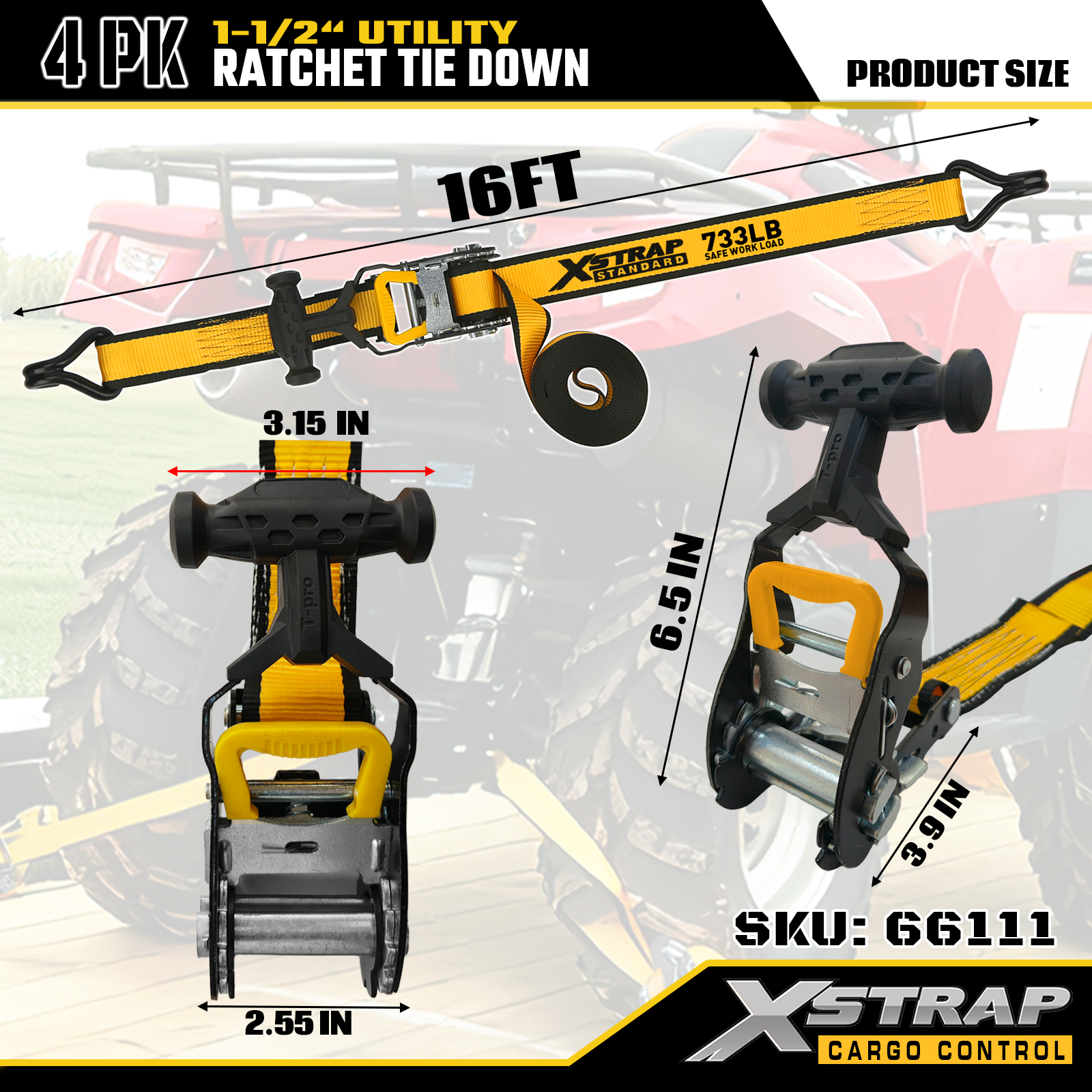Cinghie di ancoraggio a cricchetto con impugnatura a T da 1,5" x 16 piedi Xstrap 1.100 libbre SWL