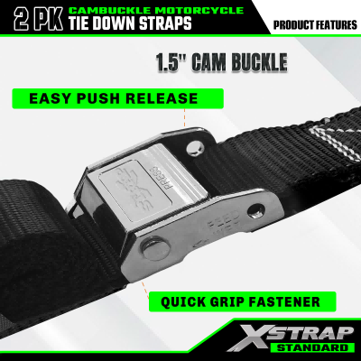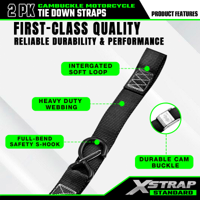 - Design standard per carichi pesanti: le cinghie di ancoraggio per moto Xstrap sono costruite con cinghie ad alta resistenza e hanno una resistenza alla rottura di 2200 libbre, rendendole la scelta migliore per proteggere motociclette, ATV, UTV e moto da cross. Quando utilizzi le nostre cinghie con fibbia a camma per un viaggio veloce, le cinghie di fissaggio Xstrap garantiscono durata e sicurezza senza pari.