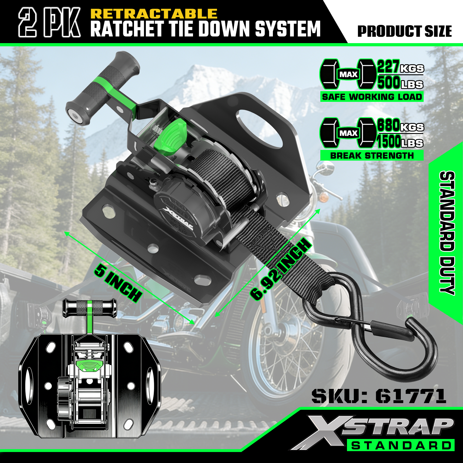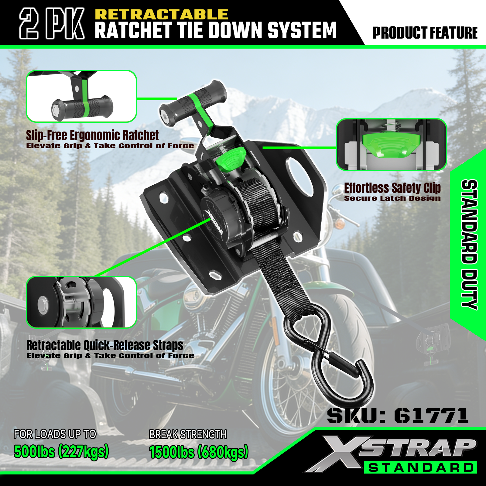 Xstrap 61771 Cinghie a cricchetto retrattili adatte per accessori auto F150 500LB SWL