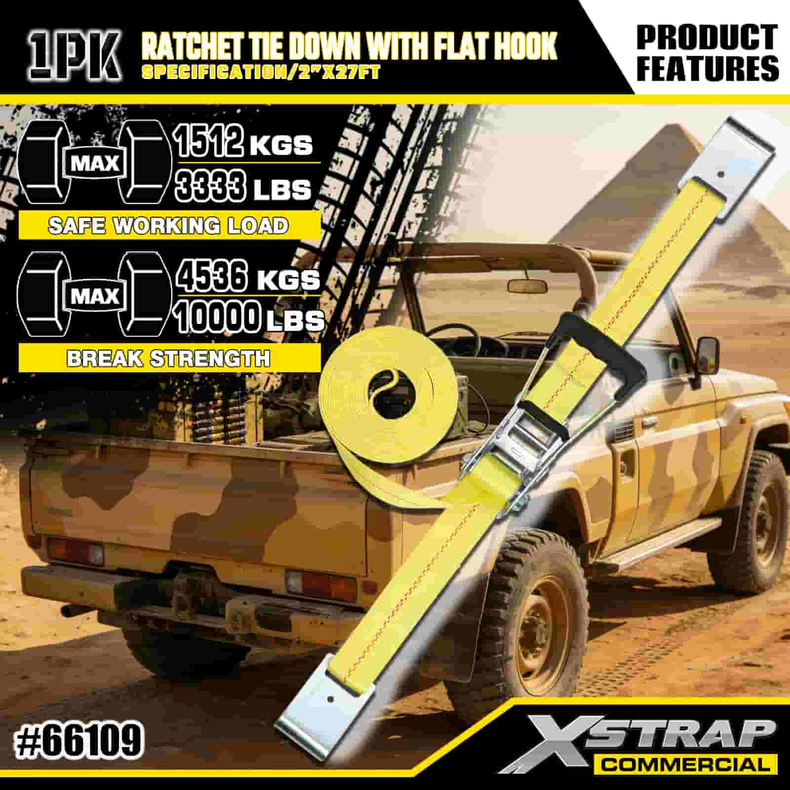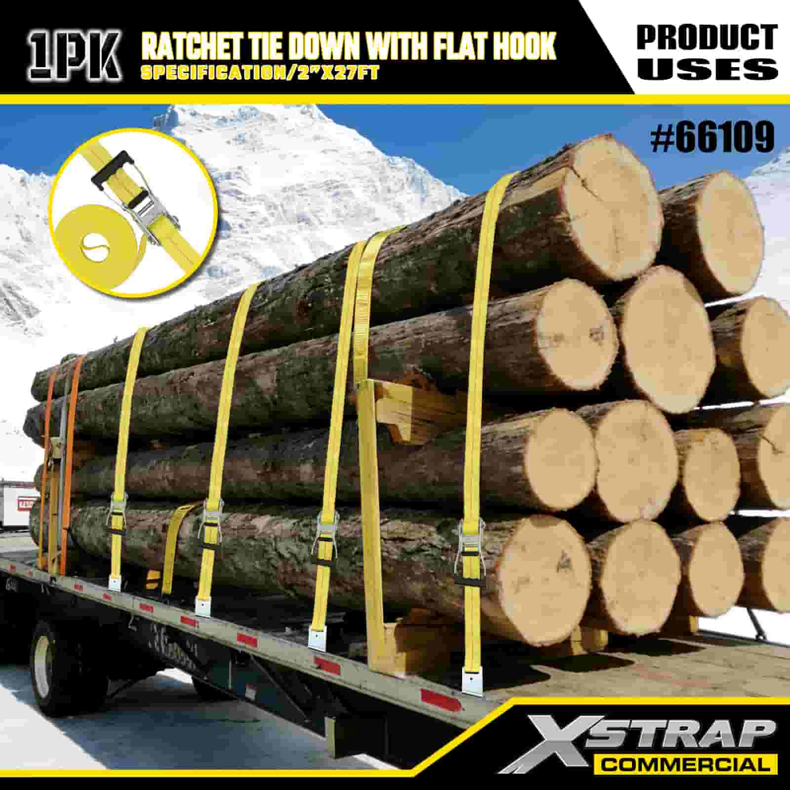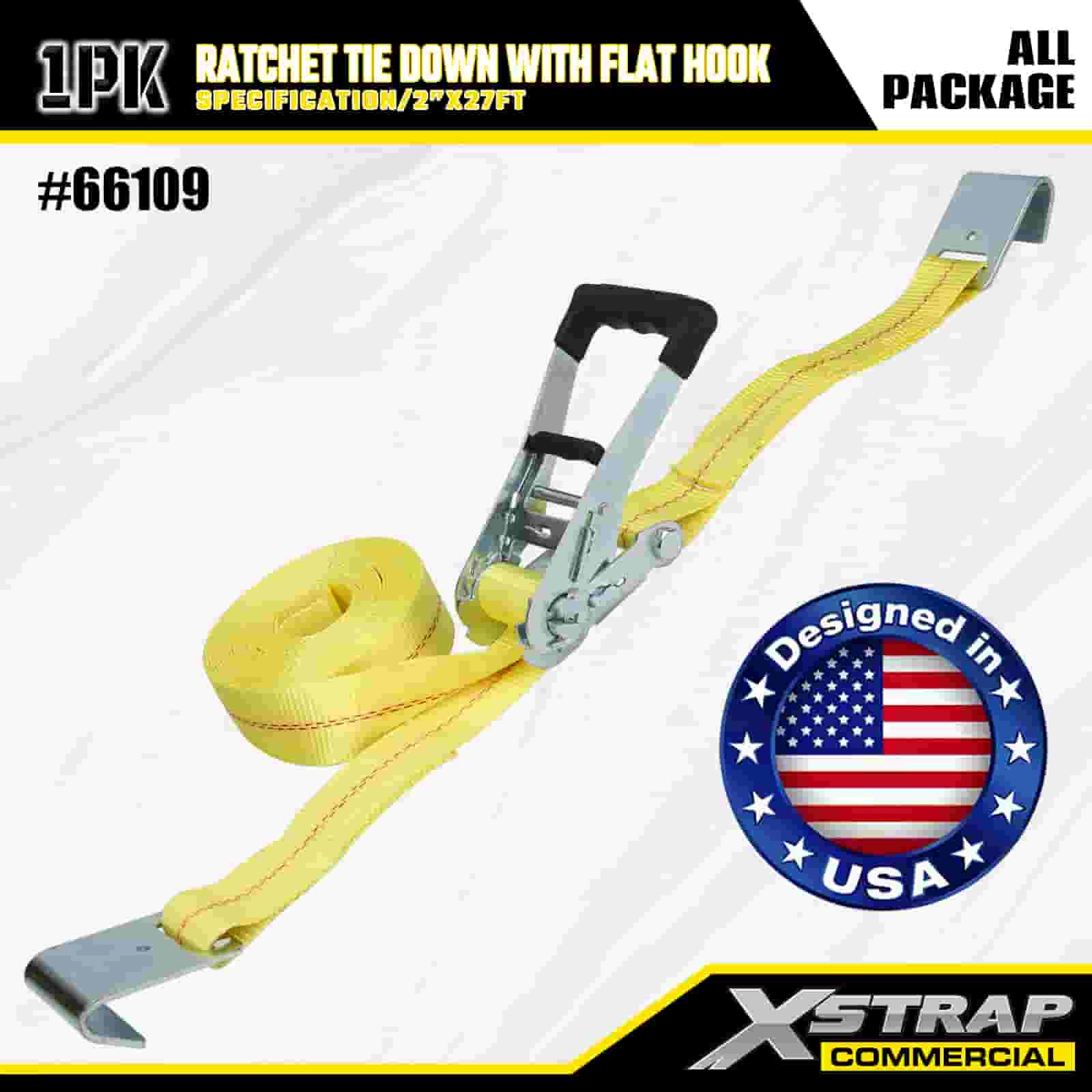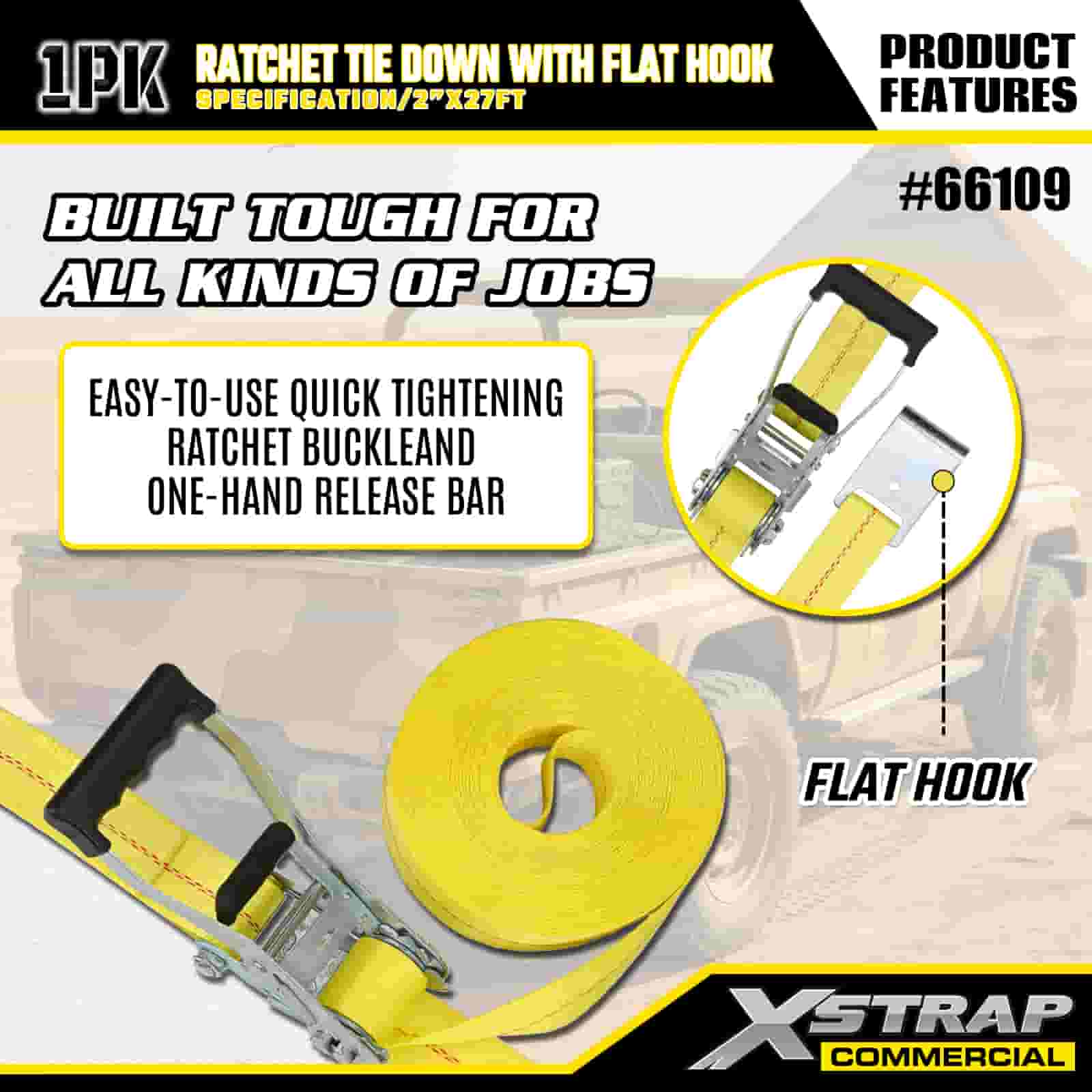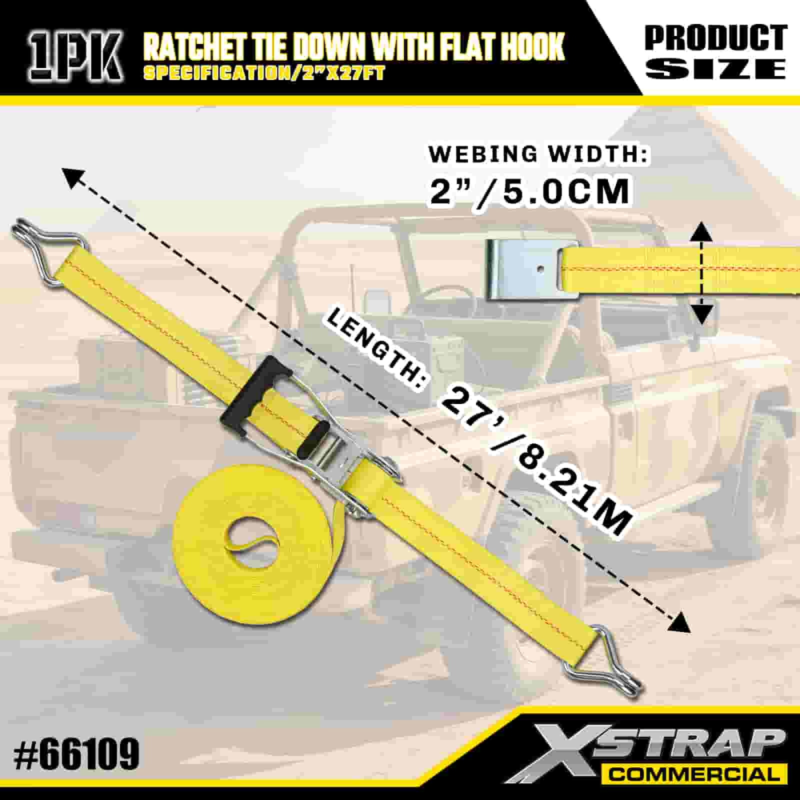 Xstrap cinghia di ancoraggio con cricchetto con ganci piatti, cinghia di ancoraggio in poliestere da 2" x 27', cinghia di fissaggio con cricchetto, capacità di 3333 libbre, cinghie di fissaggio per il carico con ganci piatti per il controllo del carico di camioncini, SUV, portapacchi per auto, motociclette.