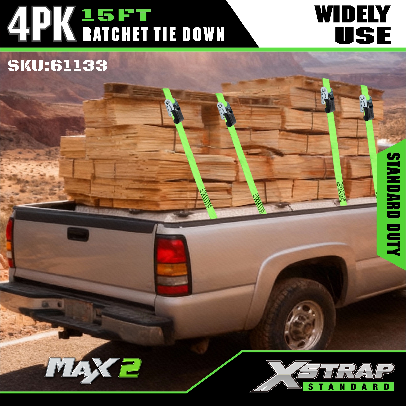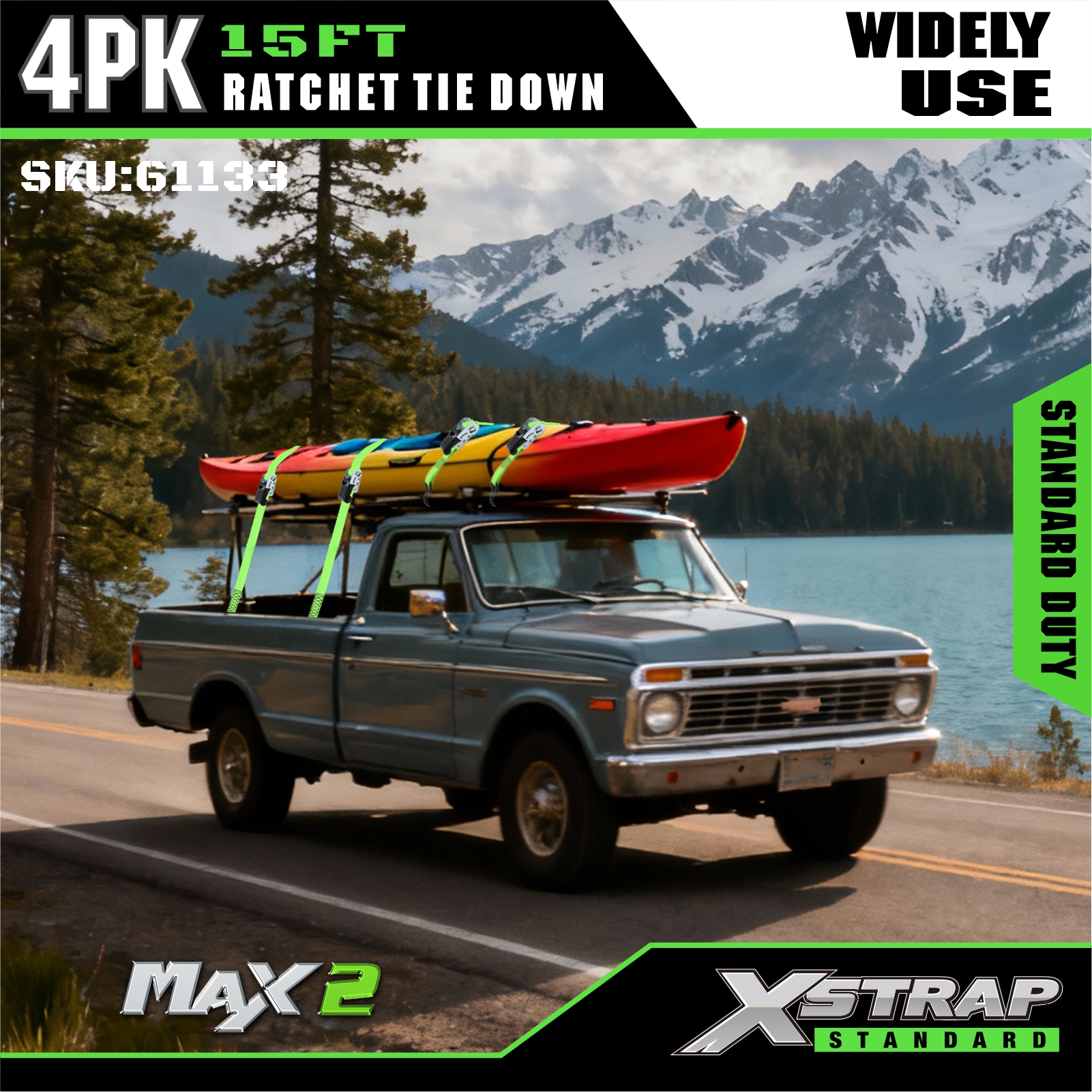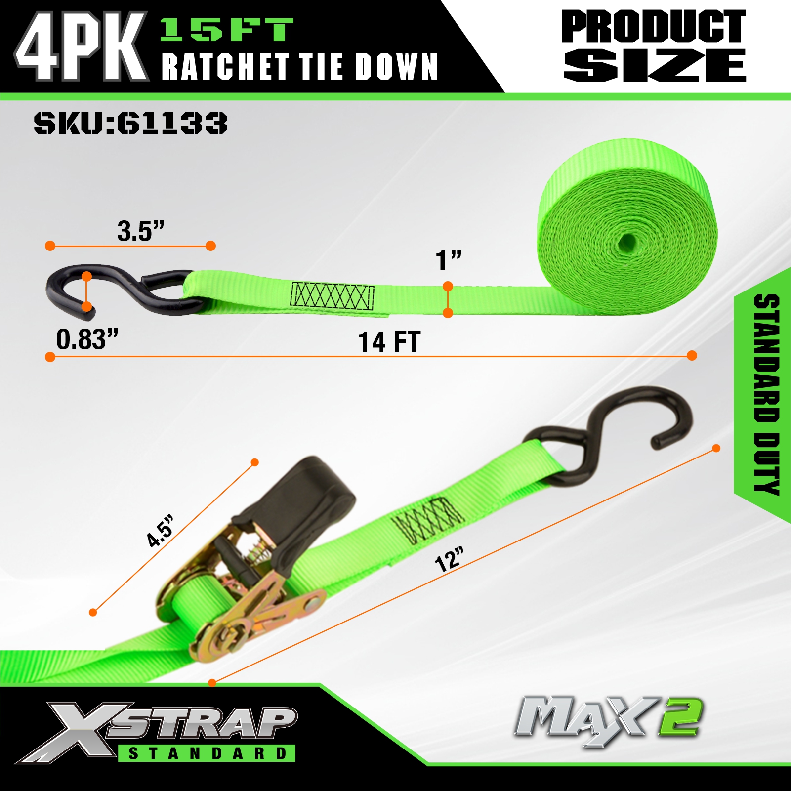 Xstrap Confezione da 4 cinghie a cricchetto, cinghia in poliestere da 1" x 15', cinghia a cricchetto con capacità di 500 libbre, cinghie di fissaggio per carico con ganci a S per camioncino, SUV, portapacchi per auto, moto, barche da pesca leggere, moto d'acqua, motoslitte, trattorini.