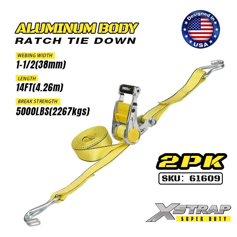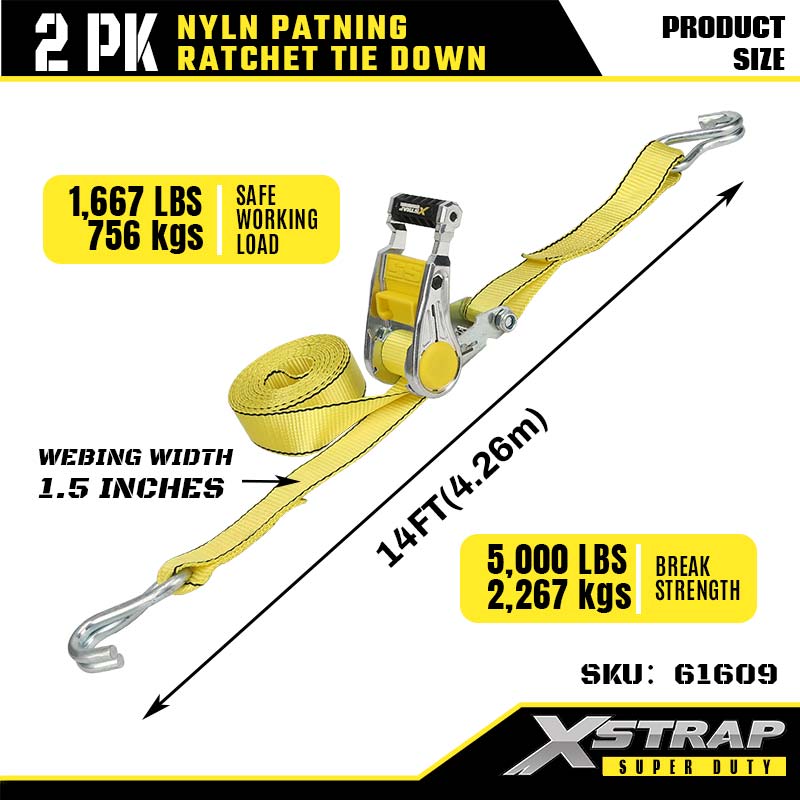 - Confezione da 2 dimensioni 14 piedi: la larghezza di 1,5 pollici distribuisce la tensione in modo uniforme per evitare danni. La lunghezza di 14 piedi si adatta ai rimorchi dei camion o ai portapacchi. La confezione da 2 ti offre cinghie sufficienti per fissare attrezzature grandi o irregolari.