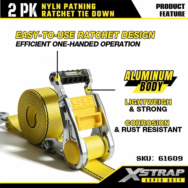 - Corpo in alluminio e cinghia in nylon: il cricchetto ha un corpo in alluminio leggero che resiste alla ruggine e alla corrosione. La spessa cinghia in nylon utilizza cuciture resistenti per evitare lo sfilacciamento. Resiste alla pioggia, al sole e alle vibrazioni violente.