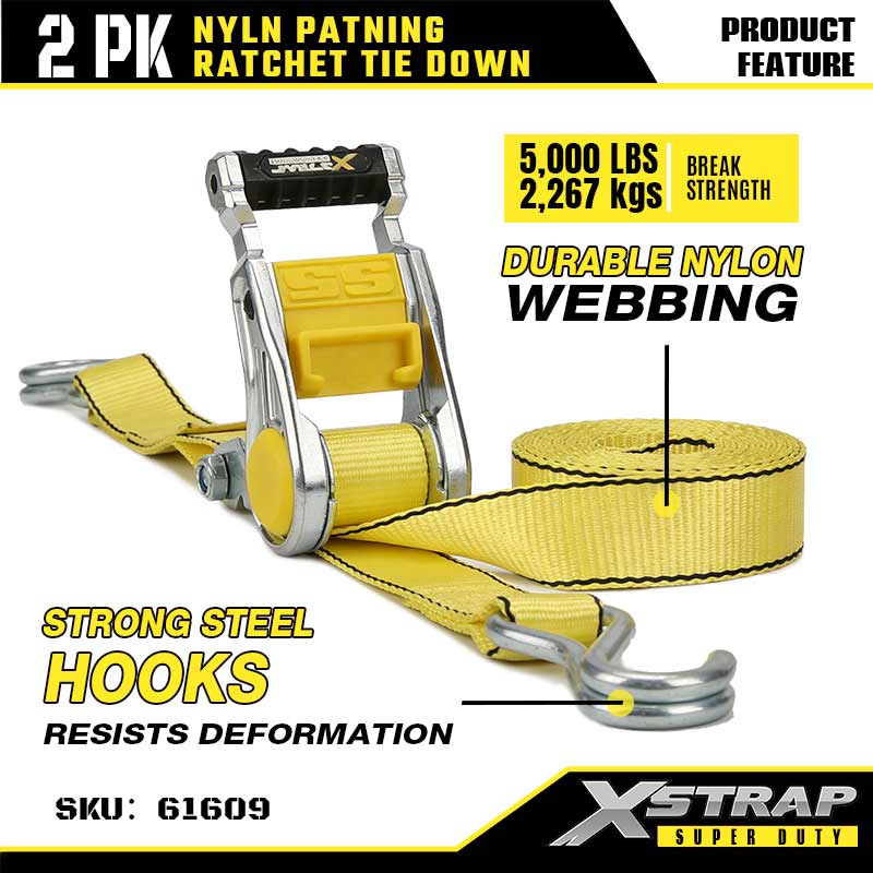 Xstrap 2 pezzi di ancoraggio a cricchetto con ganci a doppia J, cinghia a cricchetto in poliestere da 2" x 3,6', cinghie di fissaggio per carico con capacità di 1667 libbre con ganci a doppia J per rimorchi pesanti, rimorchi a pianale piatto, barche da sci, auto di piccole dimensioni, attrezzature pesanti.