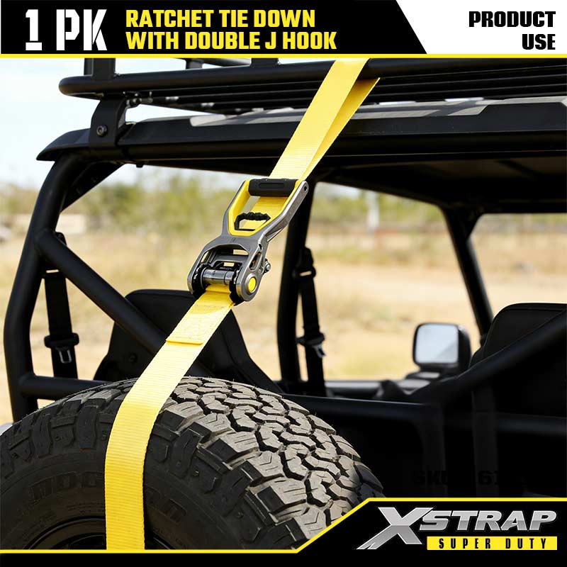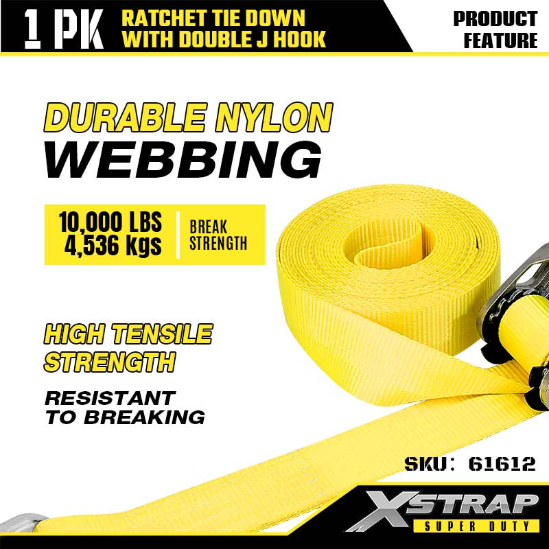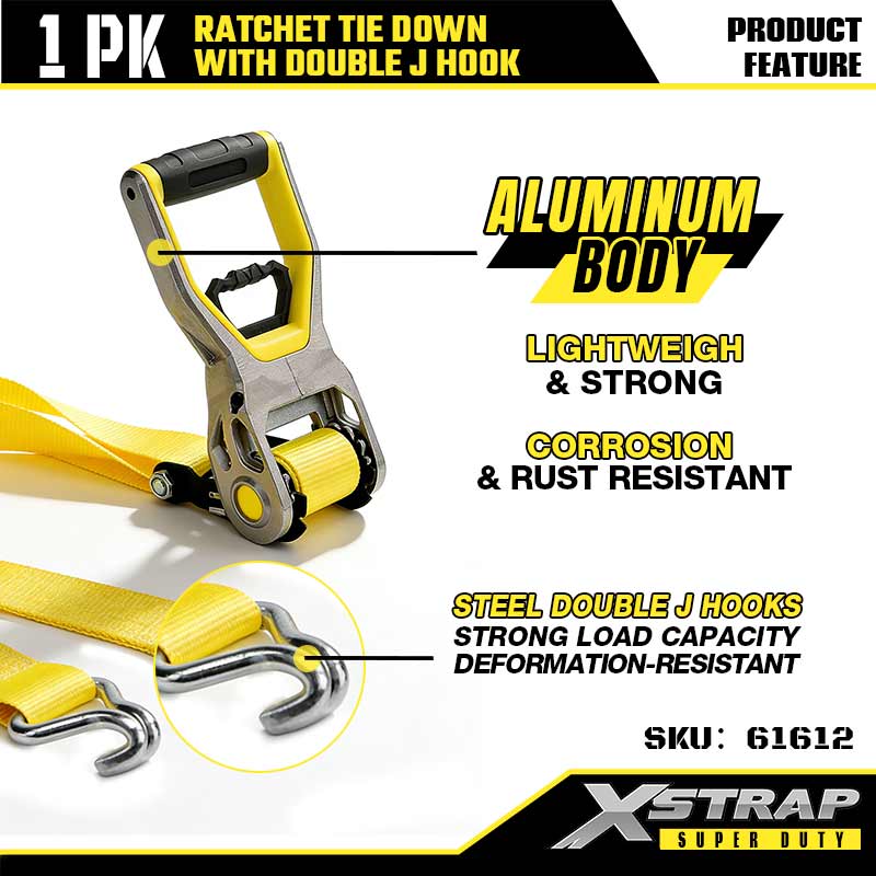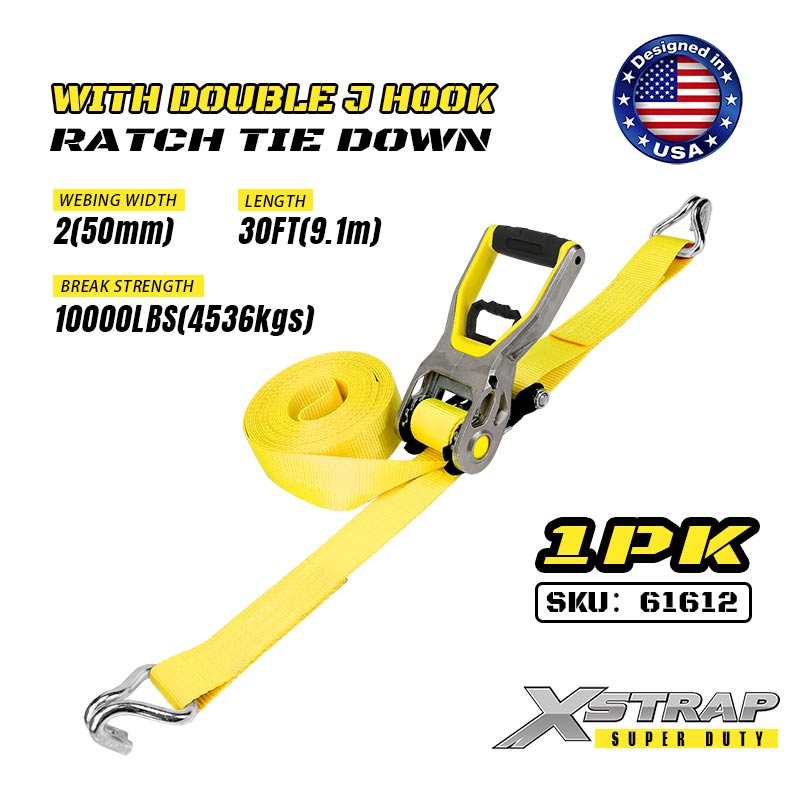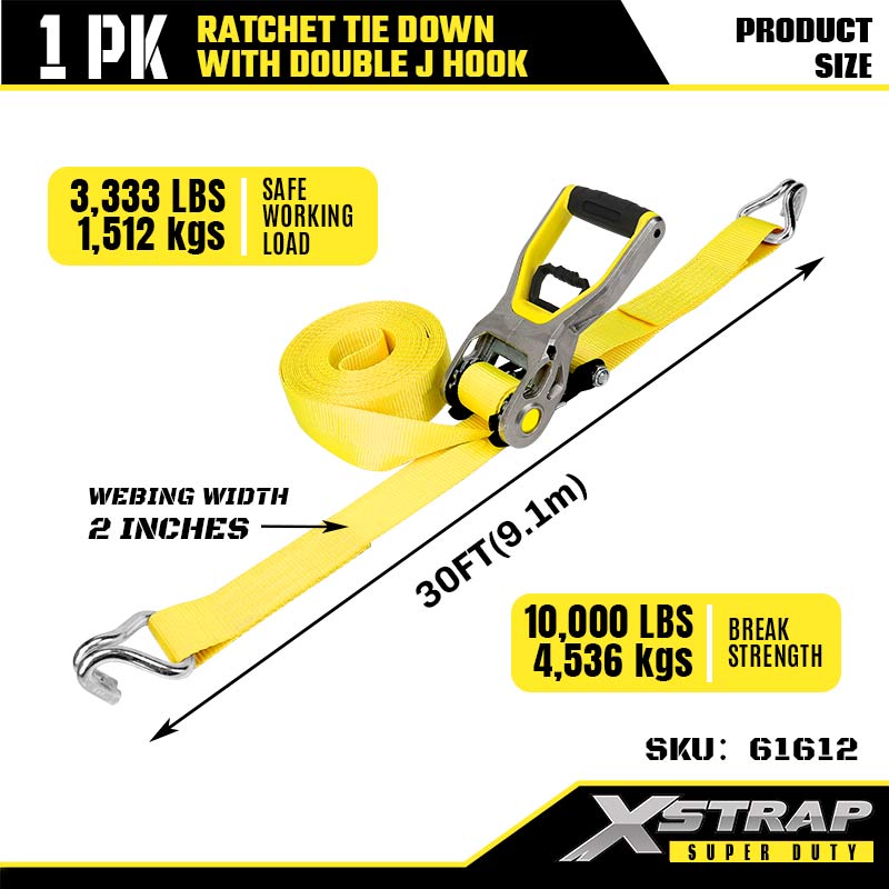 Xstrap 2 pezzi di ancoraggio a cricchetto con ganci a doppia J, cinghia a cricchetto in poliestere da 2" x 30', cinghie di fissaggio per carico con capacità di 3.333 libbre con ganci a doppia J per rimorchi pesanti, rimorchi a pianale piatto, barche da sci, auto di piccole dimensioni, attrezzature pesanti.